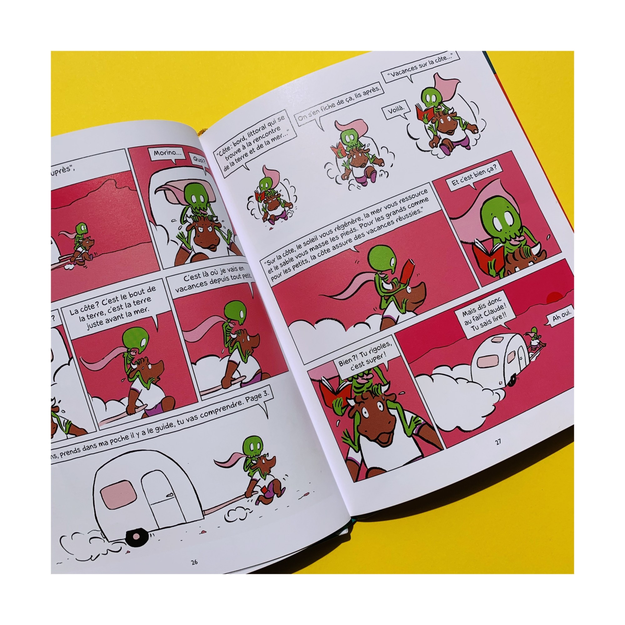 L’histoire de Claude, un petit squelette, et Morino, un taureau en vacances, c’est celle d’une amitié qui commence un peu par hasard (complètement par hasard en fait : l’un fait pipi sur l’autre sans faire exprès!). Et même si rien ne les prédestinait à devenir copains, c’est une amitié ultra touchante qu’on suit au fil des pages de cette petite bande dessinée bien construite : pas trop à lire pour des images très parlantes et pleines d’humour et de tendresse.