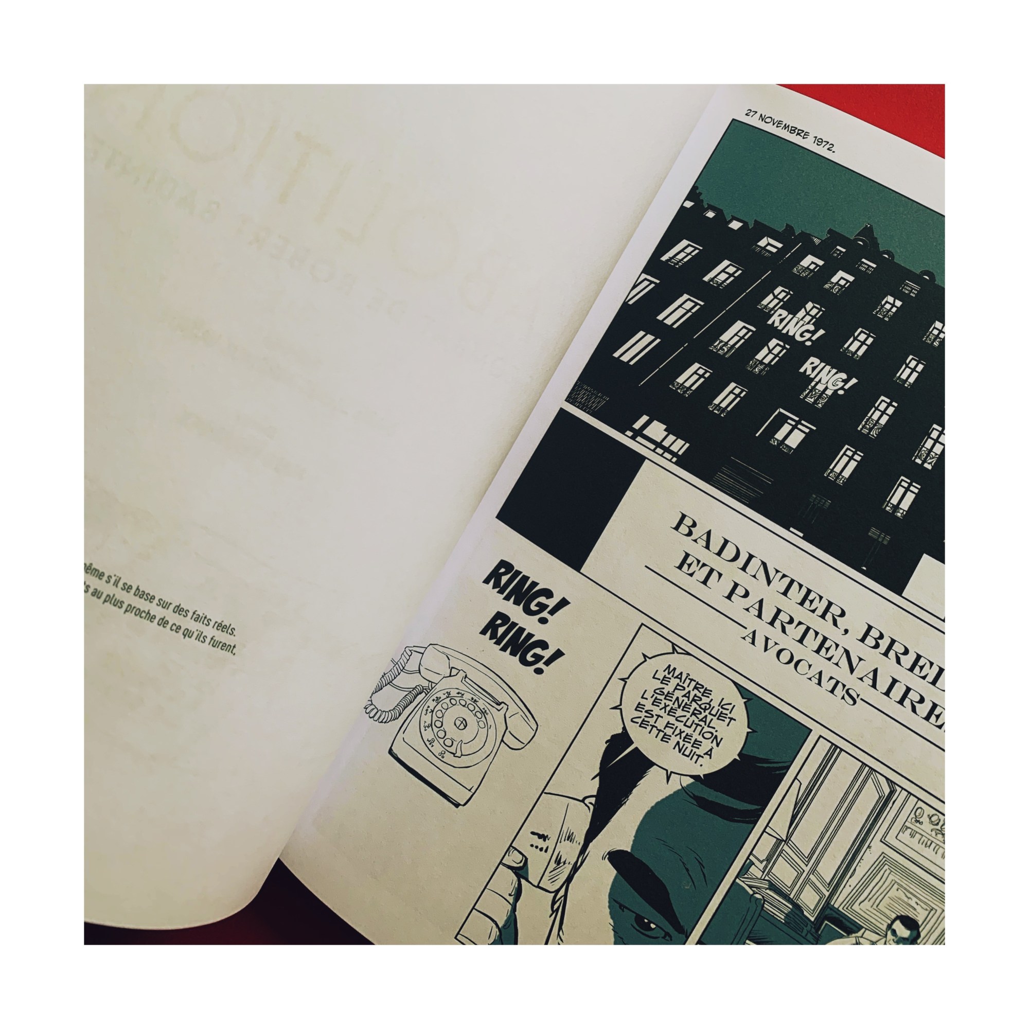 Le combat d’une vie valait bien une – bonne – BD, qui n’a même pas besoin de précision dans son titre. Clair, explicite. Même si on connaît évidemment les grandes lignes, on revit avec appréhension et émotion les étapes franchies par un homme guidé par ses idéaux, enjeux retracés avec finesse le long des centaines de pages de cet album. On comprend, de manière soudaine et violente, suite à la première confrontation malheureuse de Badinter en qualité d’avocat de la défense face à la peine capitale, les motivations qui le porteront à ne pas lâcher. Jamais. Même quand, à l’aide de flash-back sur son passé, il s’agit de regarder dans l’horreur et l’inconcevable. Là non plus, « il ne doit jamais y avoir d’exception. Jamais. ».