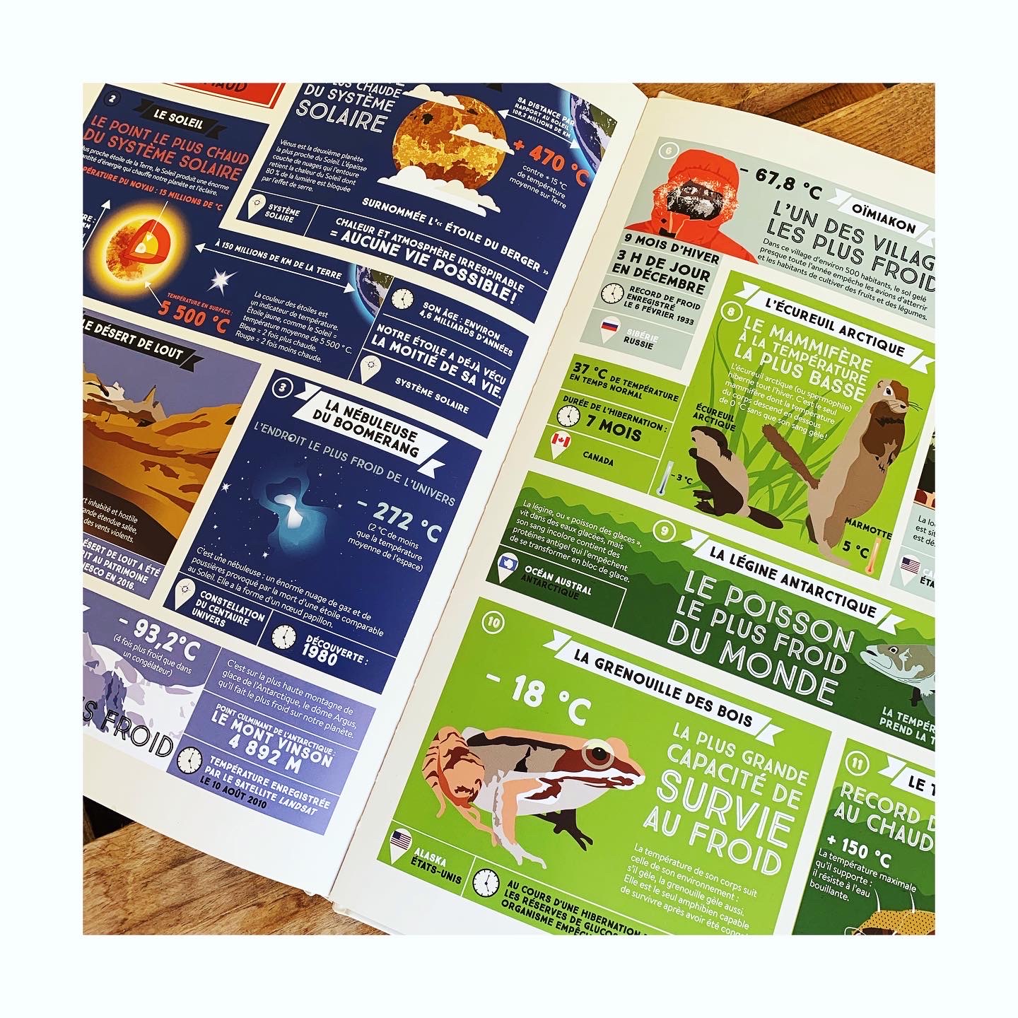 L’idée est simple : plus de 150 records mis en scène et en cartes (du monde) pour nous donner plein de réponses utiles (ou pas) et nous permettre de briller en société. Sérieusement, les illustrations sont magnifiques et superbement mises en valeur par un graphisme qui en met plein les yeux.