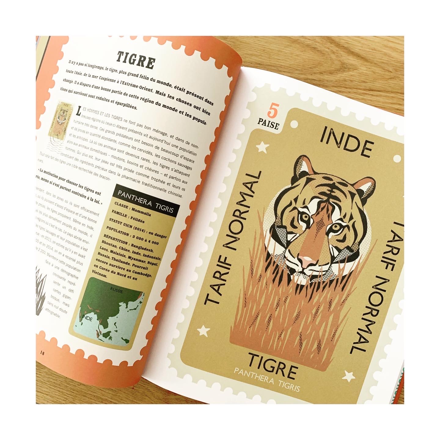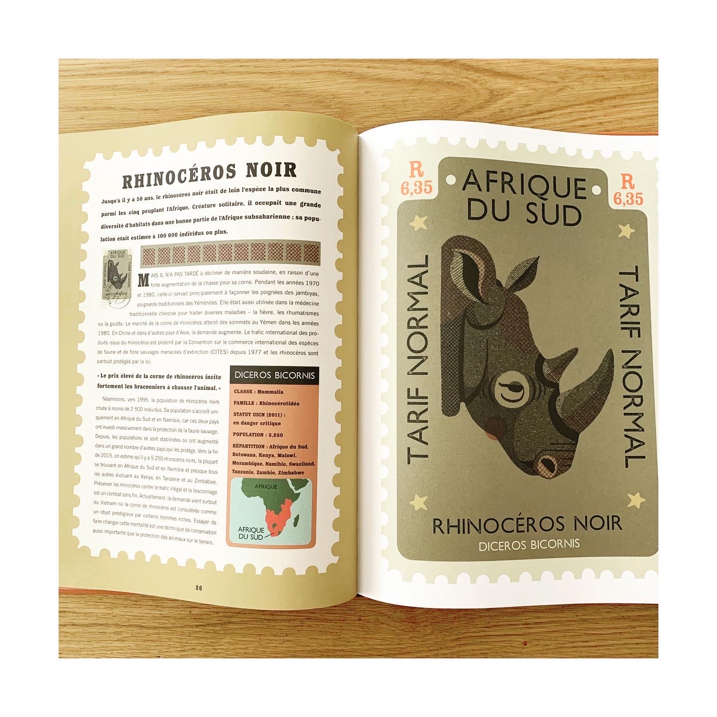 Du panda géant au lycaon, de la baleine bleue à l’albatros d’Amsterdam, en passant par le lynx pardelle ou la grue du Japon, ce ne sont pas moins de 30 espèces animales qu’on apprend à reconnaître au fil des double pages. On y apprend les caractéristiques et l’histoire de chaque animal en voie de disparition, tout en comprenant pourquoi il figure sur cette triste liste et où en est l’espèce à ce jour.