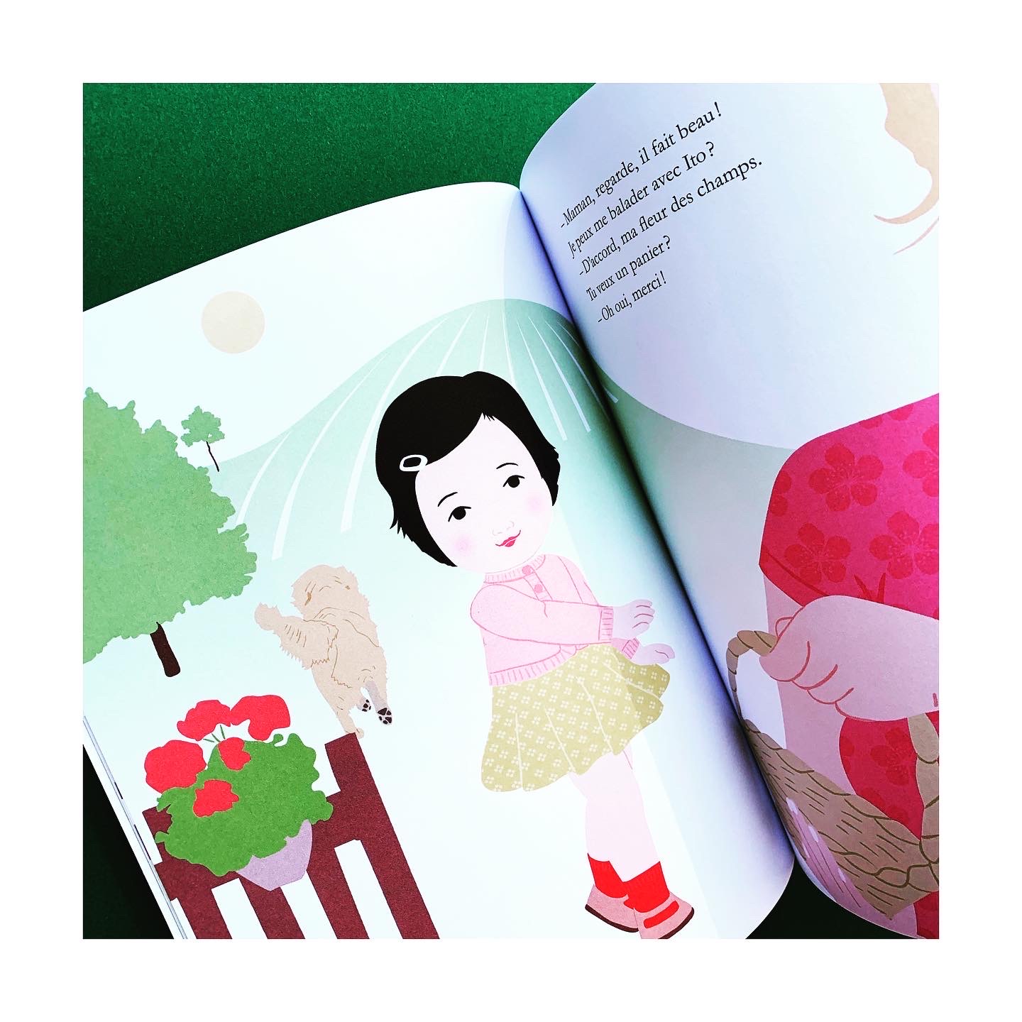 Les superbes dessins m’ont tout de suite tapé dans l’œil et chaque page est une invitation à la poésie. On part en balade aux côtés de la petite Asami et de son grand chien Ito, qui se promène seule car sa maman est occupée…