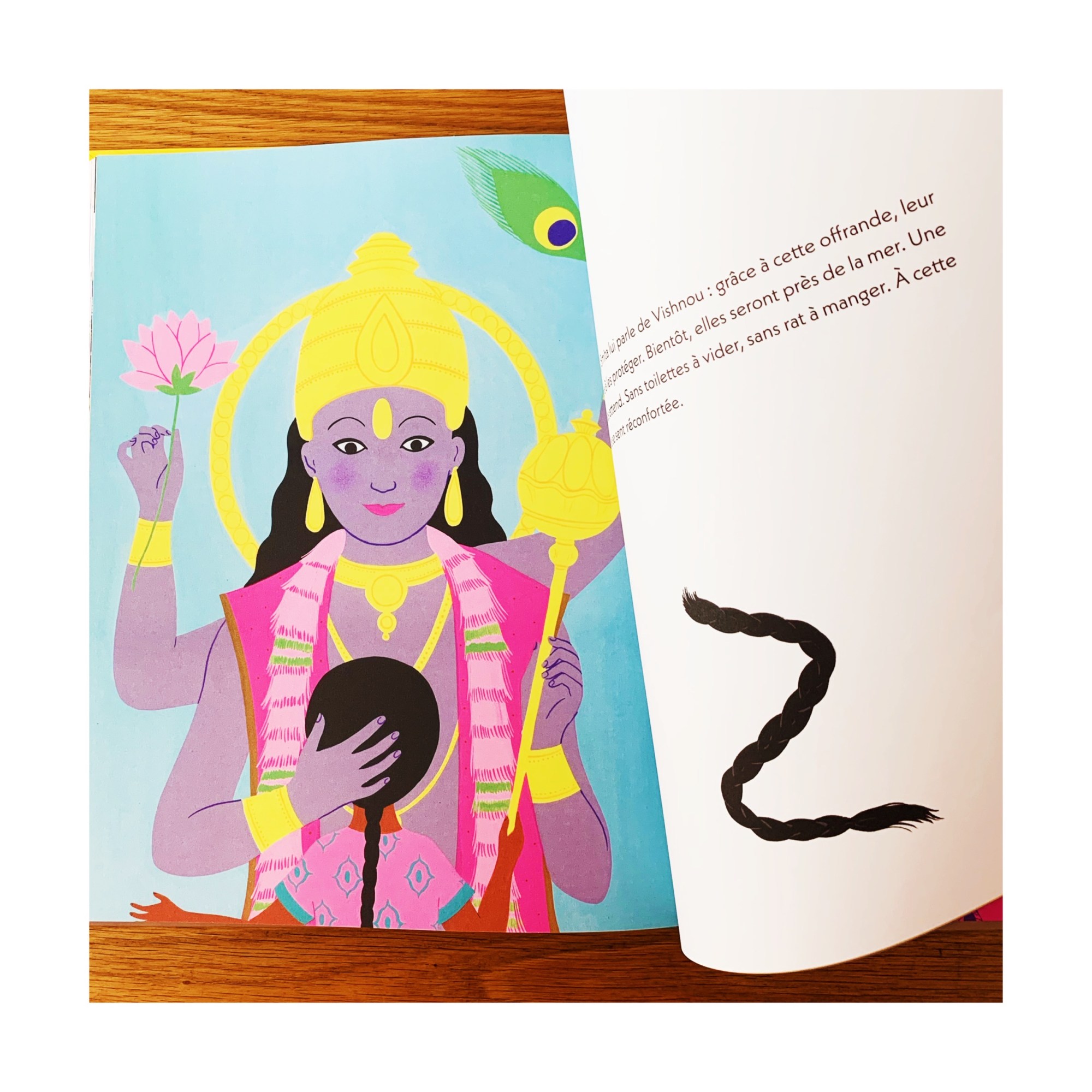 Simplifiée, l’histoire se concentre sur le parcours de Lalita et de sa mère, en Inde, prêtes à tout pour atteindre la vie à laquelle elles aspirent : libre. Libres d’apprendre, de travailler dignement, de vivre sans violence. Mais pour ça elles doivent s’enfuir loin de leur village où les gens comme eux, les dalits, les Intouchables, ne sont pas acceptés. On les suit dans le pèlerinage qu’elles font pour rencontrer leur divinité, Vishnou, qui les a portées pour réussir à prendre ce nouveau départ. Vishnou pour qui les indiennes coupent leurs magnifiques chevelures, en offrande.