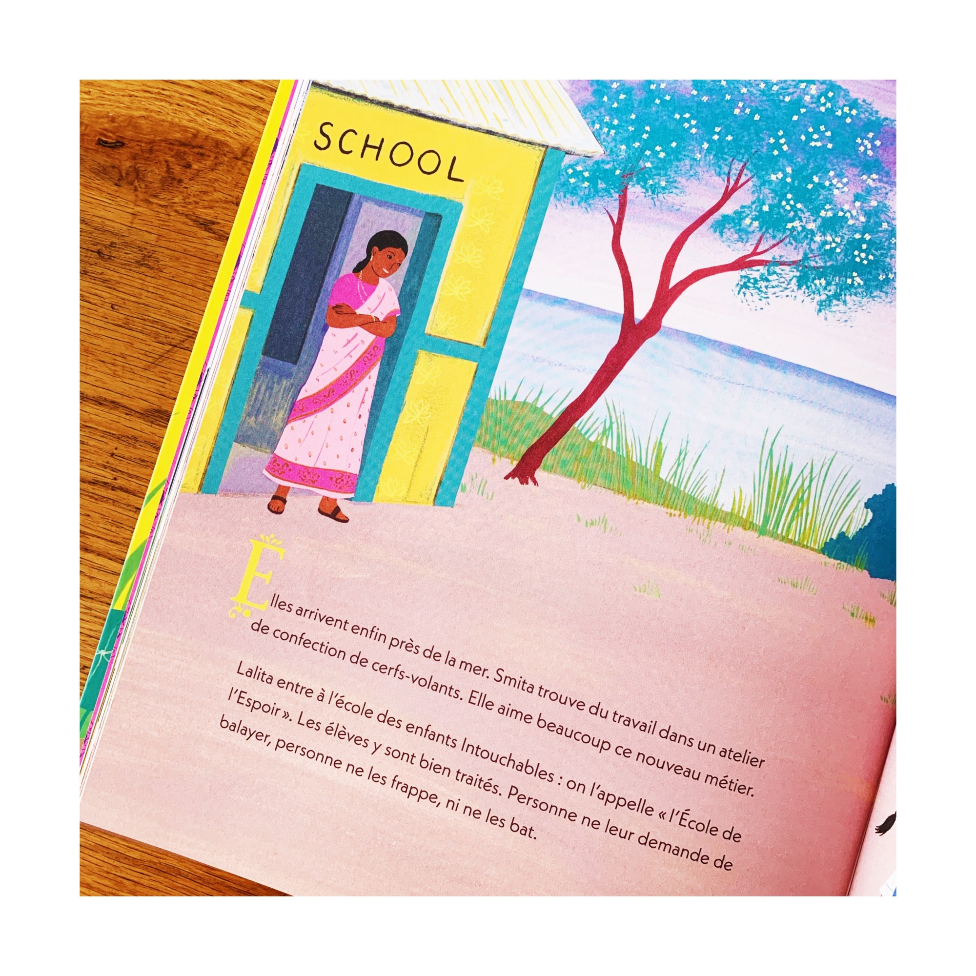 Les illustrations amènent une vraie valeur ajoutée aux mots de l’auteure, hyper colorées et chaleureuses, pour nous offrir une Inde aux milles nuances. C’est un message d’espoir que livre Laetitia Colombiani avec l’histoire de Lalita et son voyage vers un futur meilleur. Une leçon d’espoir à mettre entre toutes les petites mains.