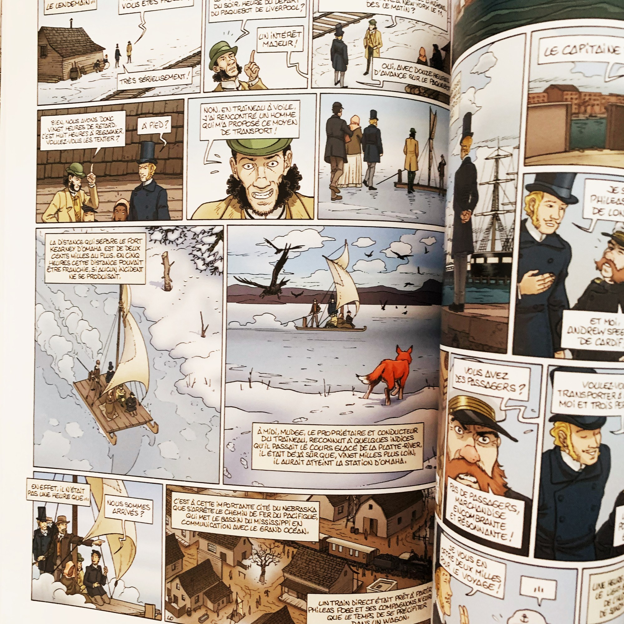 Se replonger dans l’aventure rocambolesque de Phileas Fogg et son valet Passepartout embarqués dans le défi fou de parcourir le monde en 80 jours (ou 1’920 heures, ou 15’200 minutes), ou le faire découvrir aux jeunes lecteurs par le biais de la bande dessinée… en voilà une super idée !