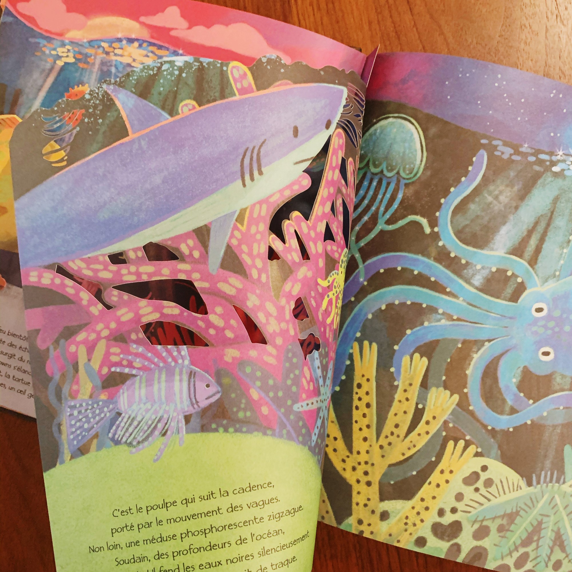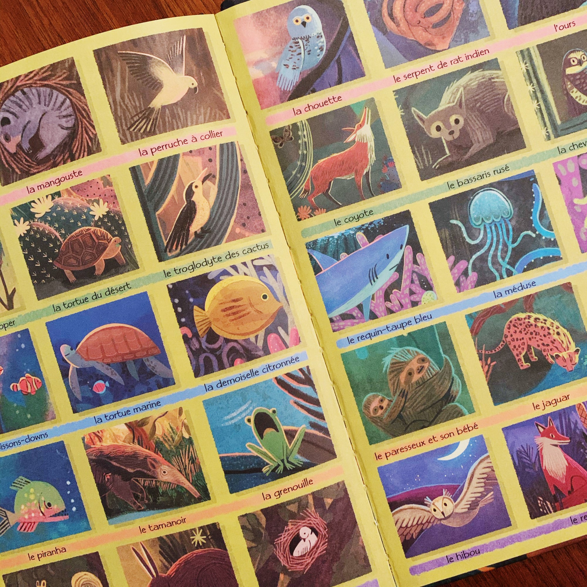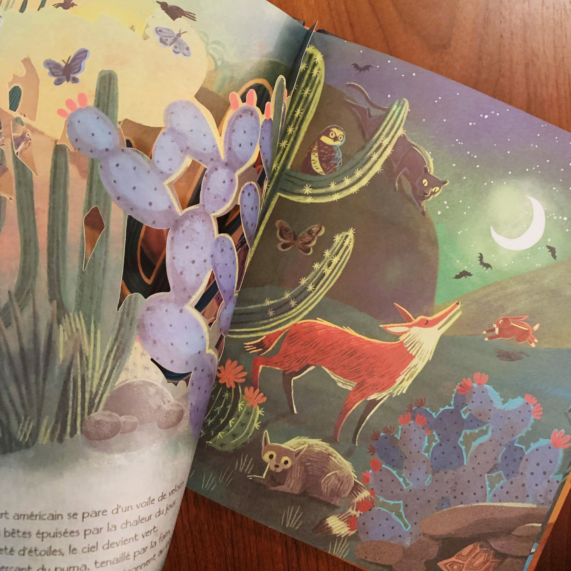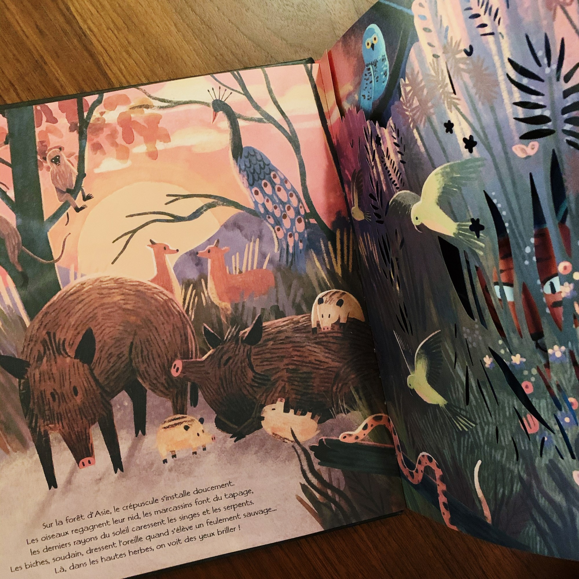 Les pages découpées au laser amène à ce livre un aspect incroyablement poétique, laissant apparaître secrètement les animaux cachés comme si on se trouvait soi-même dans la nature à tenter de les apercevoir. Un lexique imagé très utile à la fin du livre nous permet de connaître le nom de chaque animaux croisé au détour des pages.
