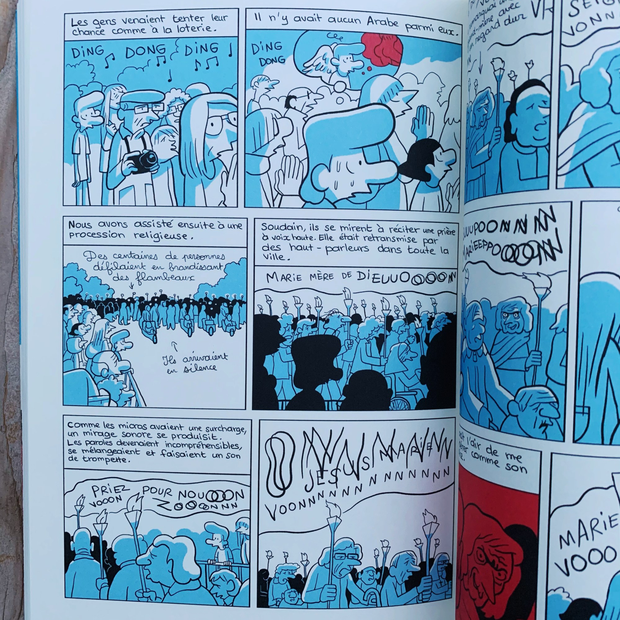 Pour la toute petite partie de la population mondiale qui ne connaîtrait pas encore l’Arabe du futur, on suit la jeunesse de l’auteur, Riad Sattouf – moitié français, moitié syrien – dès 1978 à Tripoli, dans la Libye de Kadhafi, puis en Syrie, dans un petit village près de Homs, auprès de la famille de son père. On découvre son sentiment d’enfant blond qui grandit au milieu de traditions qu’il observe de loin, du mal que sa mère a à s’intégrer au milieu d’une pression familiale trop extrême et des grands discours de son père. On suit ensuite le jeune Riad et ses jeunes frère qui partent vivre en Bretagne avec leur mère tandis que leur père se radicalise peu à peu et part de son côté en Arabie Saoudite. Le jeune garçon découvre la France et apprend les différences, les possibilités qui s’ouvrent, lui qui vient d’un pays radical et où la violence fait partie trop souvent du quotidien.
