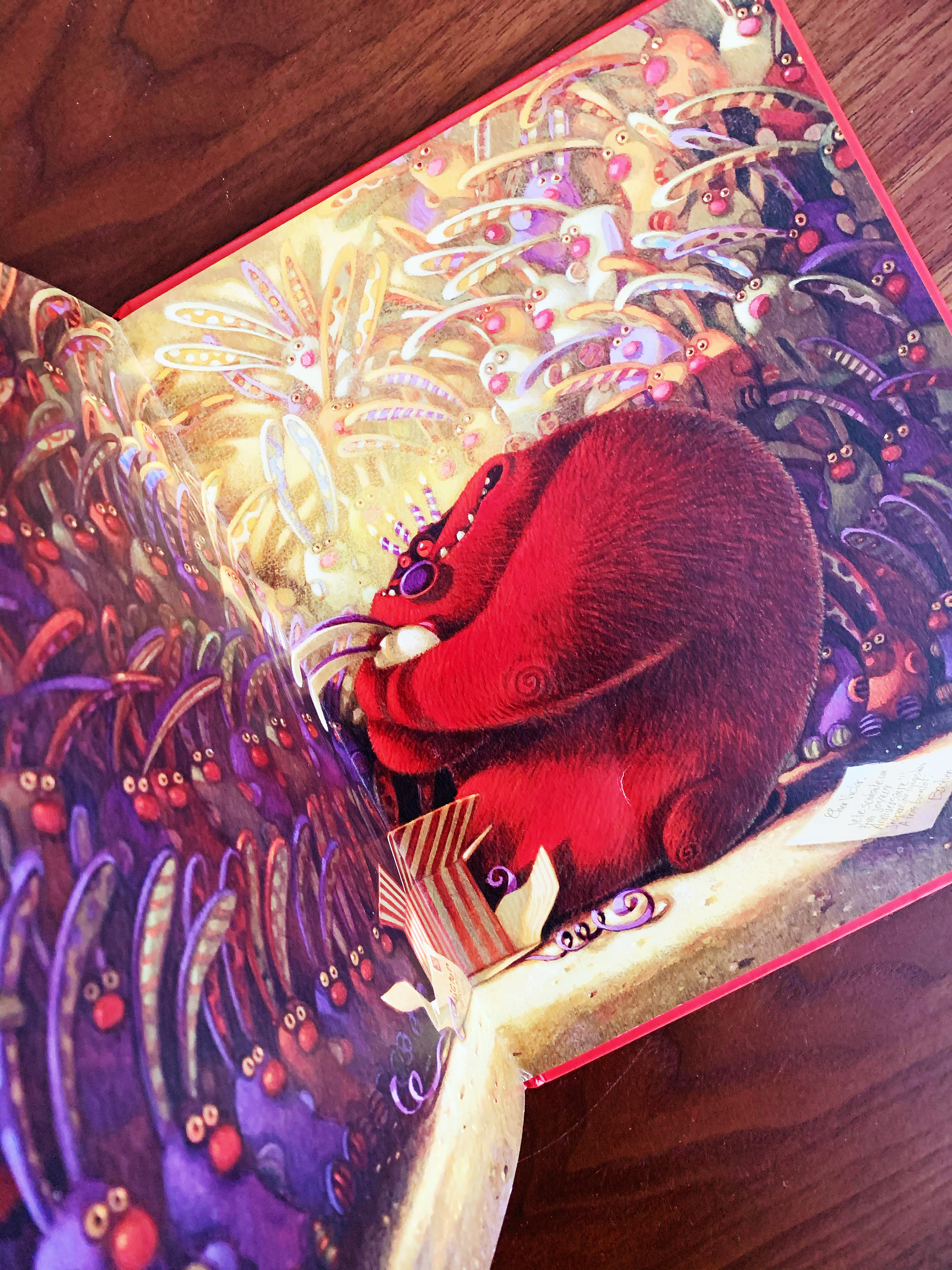 On adore vraiment les dessins festifs et colorés de cet album et le monstre des anniversaires est devenu l’un de nos préférés!