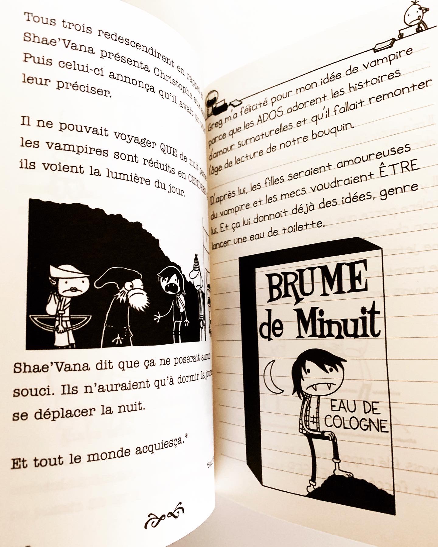 Les bouquins de Jeff Kinney sont hyper faciles d’accès – malgré le nombre de pages – pour les jeunes lecteurs à qui les « vrais livres » font peur par leur épaisseur ou la quantité de texte. Ils se lisent comme on regarde un dessin animé, ponctués d’images « BD » et de blagues, d’une écriture moderne et rigolote qui accroche tout de suite son public de 9 à 12 ans environ. Ce format détonnant et efficace, découvert dans le Journal d’un dégonflé, est vraiment super bien pensé et fonctionne sur tous les jeunes pré-ados, lecteurs assidus ou non.