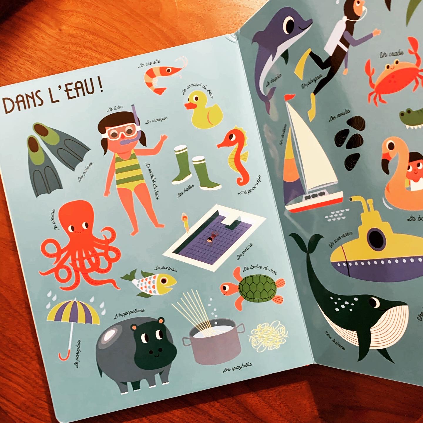 Oui bon, un imagier on connaît me direz-vous. Mais le grand plus ici c’est que les mots ne sont pas classés selon des lettres, des couleurs ou des thèmes impossibles à comprendre pour des petits yeux qui découvrent le monde. Les plus de 200 mots qui composent ce grand livre sont répartis selon qu’ils font du bruit, qu’ils piquent, qu’ils sont chauds ou froids, piquants ou tout doux! On adore!