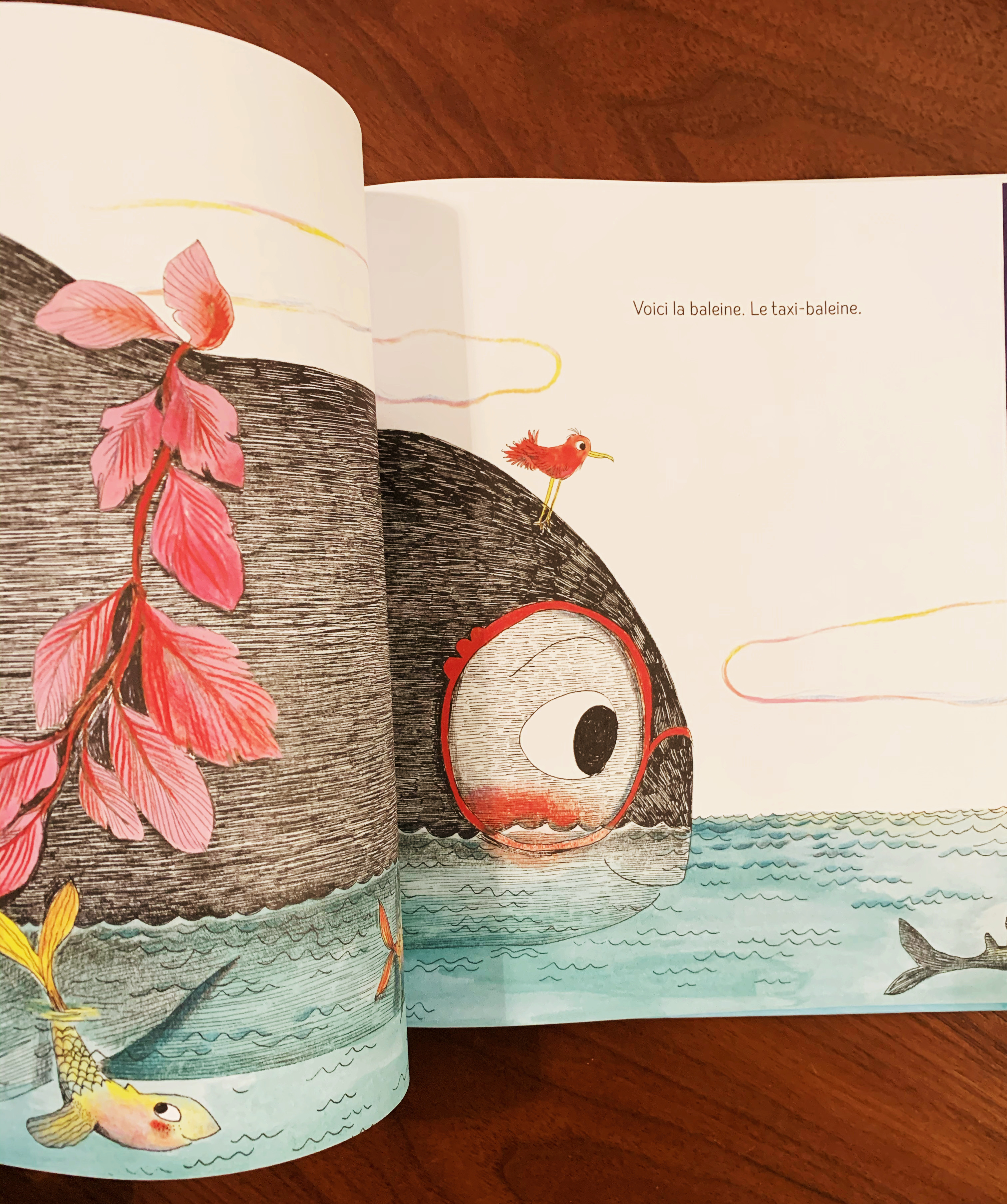 La baleine sourit. La baleine est attendue. Elle aime tellement être taxi.