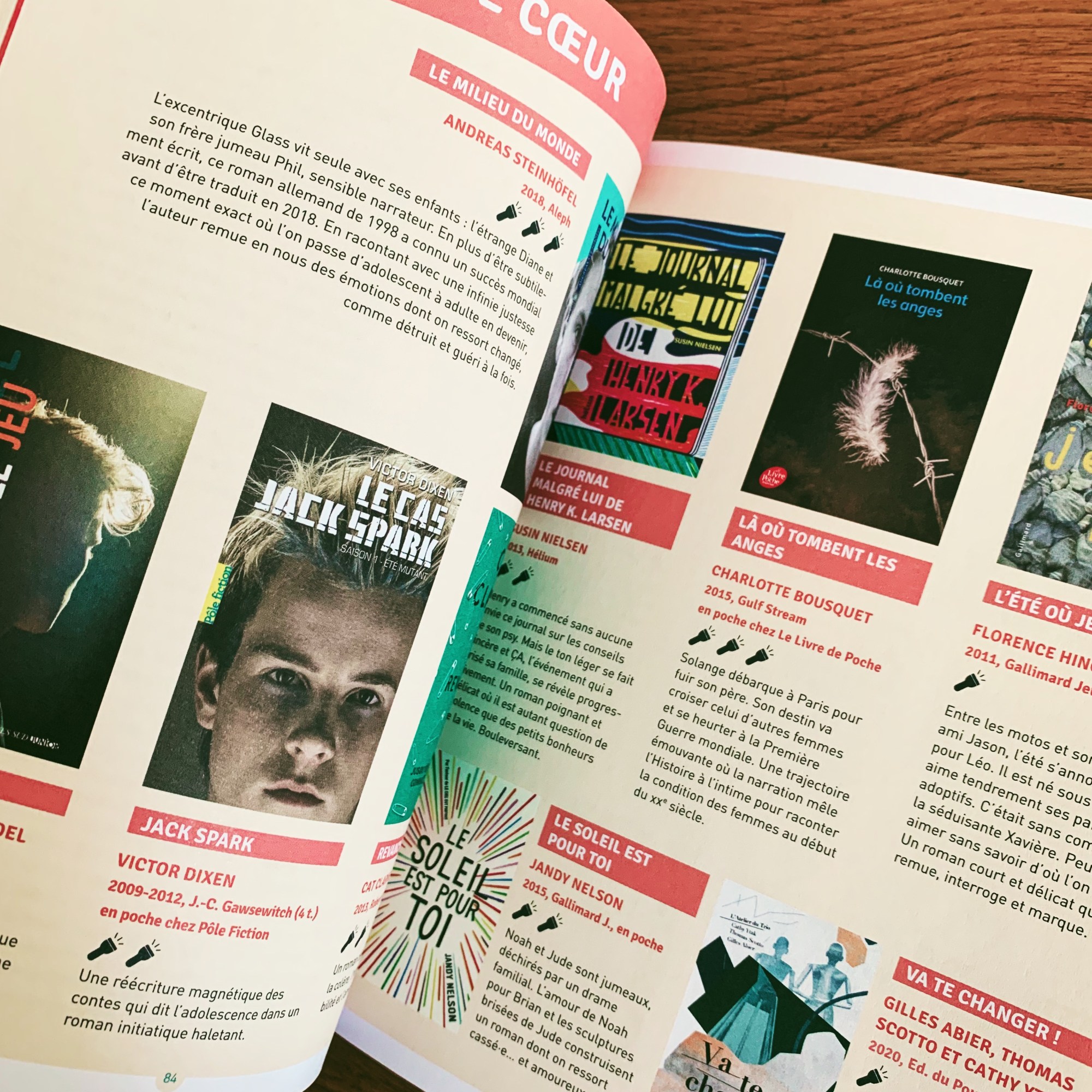 Littérature ado, young adult… vaste sujet! Et pourtant il n’est clairement pas encore assez exploré ni valorisé, et ce guide très complet en donne une première bonne perspective (le parti pris est de se limiter aux romans pour garder le cap). Histoire, définition, contextualisation dans une société en plein mouvement, comment se familiariser avec sa lecture, portraits d’acteurs de ce nouveau genre, coups de cœur, astuces, liens, incontournables… ce guide est une véritable petite bible pour tous ceux qui s’intéressent à ce genre qui se veut intense et décoiffant. D’ailleurs j’ai d’ores et déjà prévu de le garder systématiquement à portée de main pour y puiser régulièrement des infos capitales (oui je ne l’ai pas encore lu entièrement et oui j’ai deux pré-ados à la maison)…
