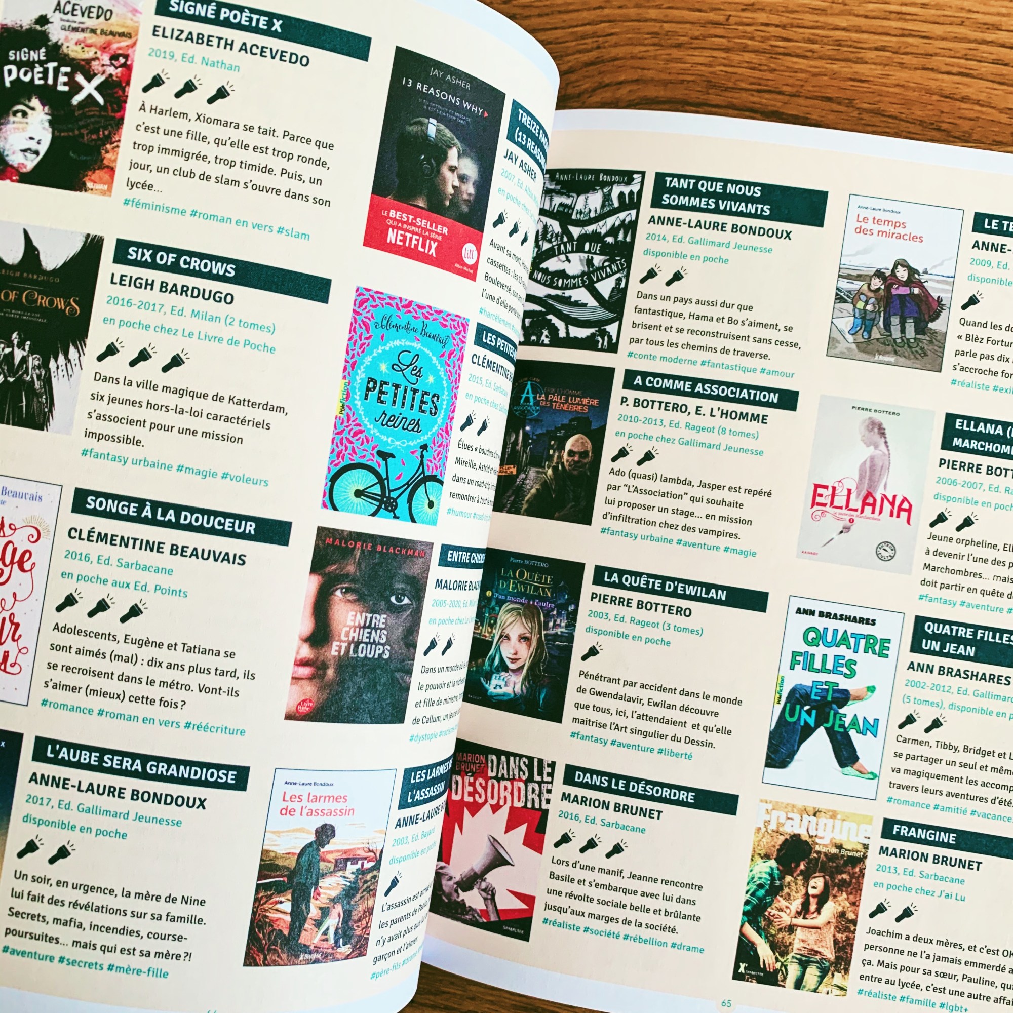 Je ressens en ce qui me concerne une certaine envie nostalgique envers ces générations d’adolescents qui peuvent désormais se perdre dans des rayons entiers de romans fantastiques, remplis d’histoires d’amitiés indéfectibles, de premiers amours, de quêtes grandioses et de destinées uniques. Évidemment, vous me direz – et l’historique présenté au début du guide ne le démentira pas – qu’il y a toujours eu de la littérature jeunesse. Oui évidemment, mais depuis le début des années 2000 qui ont vu l’émergence d’épopées comme celles d’Harry, Ewilan et compagnie, un cap a été franchi et on assiste à un véritable âge d’or de cette littérature de genre. Et c’est tellement important de préciser (si nécessaire) qu’elle n’est pas réservée aux ados… comme à l’inverse il ne devrait pas être utile de souligner que les enfants peuvent ouvrir des romans « adultes », c’est finalement juste le rapport au livre et à sa lecture qui se modifie avec le temps, avec les années qui passent et les expériences qui y sont liées.