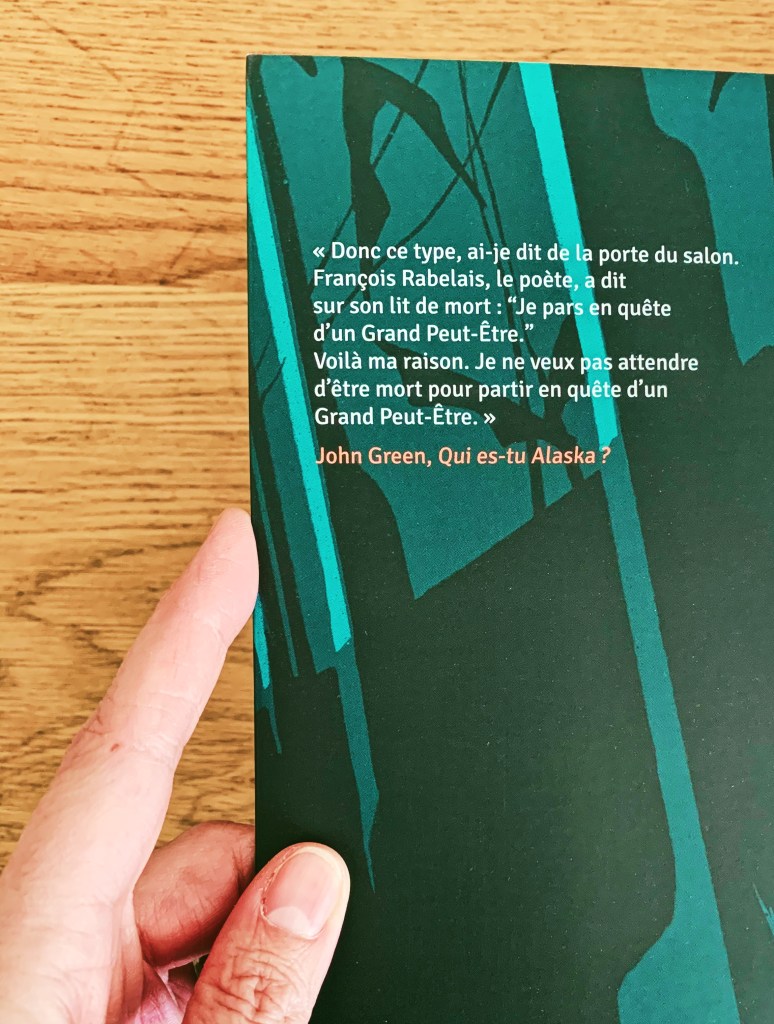 Au début de Qui es-tu Alaska ? (John Green, 2007), le héros, Miles, quitte le domicile familial. « Pourquoi ? » demandent ses parents à qui il répond : « François Rabelais, le poète, a dit sur son lit de mort : « Je pars en quête d’un Grand PeutEtre. » Voilà ma raison. Je ne veux pas attendre d’être mort pour partir en quête d’un Grand Peut-Etre ». Ce « Grand Peut-Etre » , c’est celui de l’adolescence, ce moment très intense durant lequel tout est encore possible.