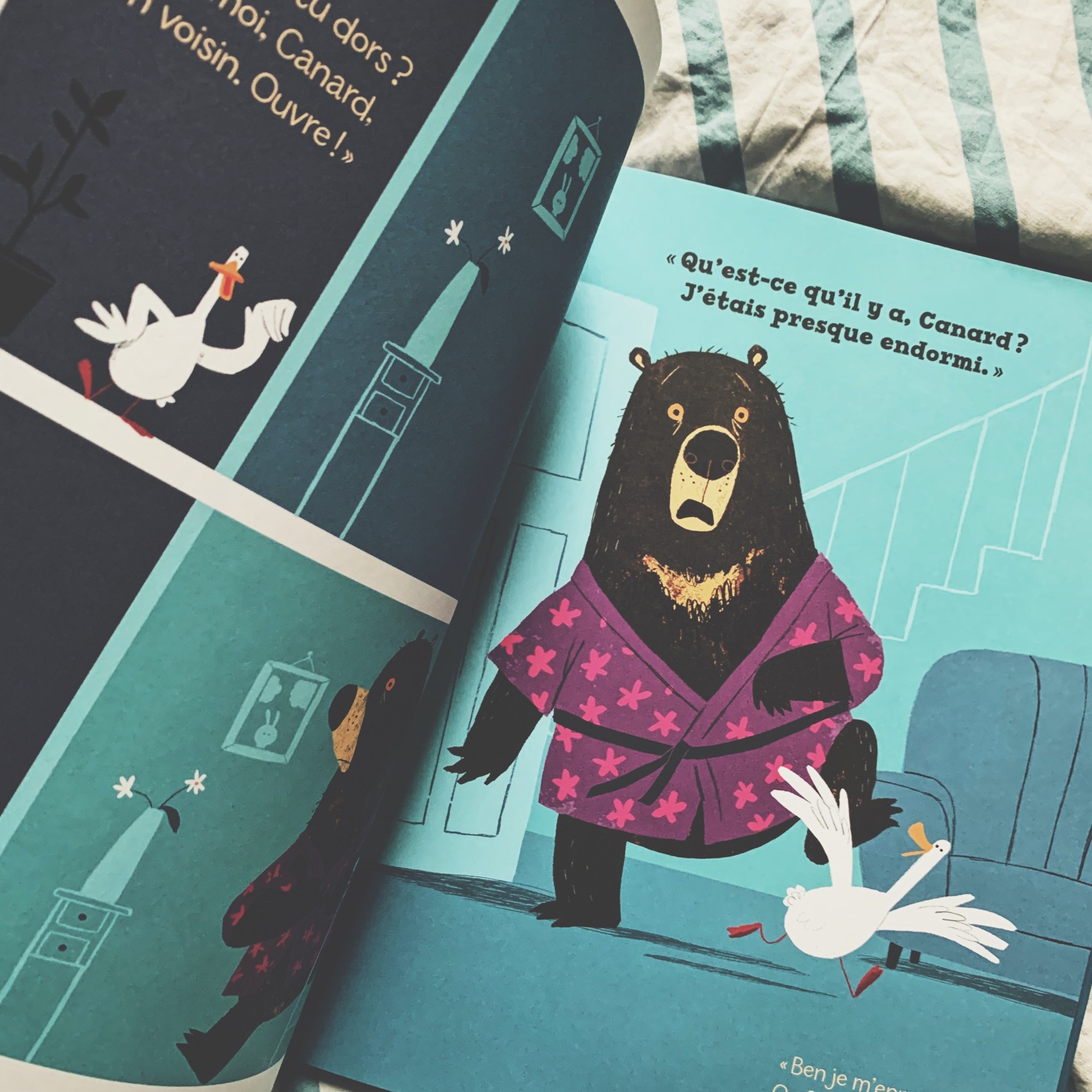 Une histoire simple et efficace qui fera bien rigoler pour l’histoire du soir! Si on fait connaissance de ces deux compères qui prennent vie sous les traits de crayons de l’incroyable Benji Davies, c’est pour mieux les retrouver dans d’autres albums tout aussi drôles et attachants dans lesquels Canard réserve d’autres questions à son ami Ours !