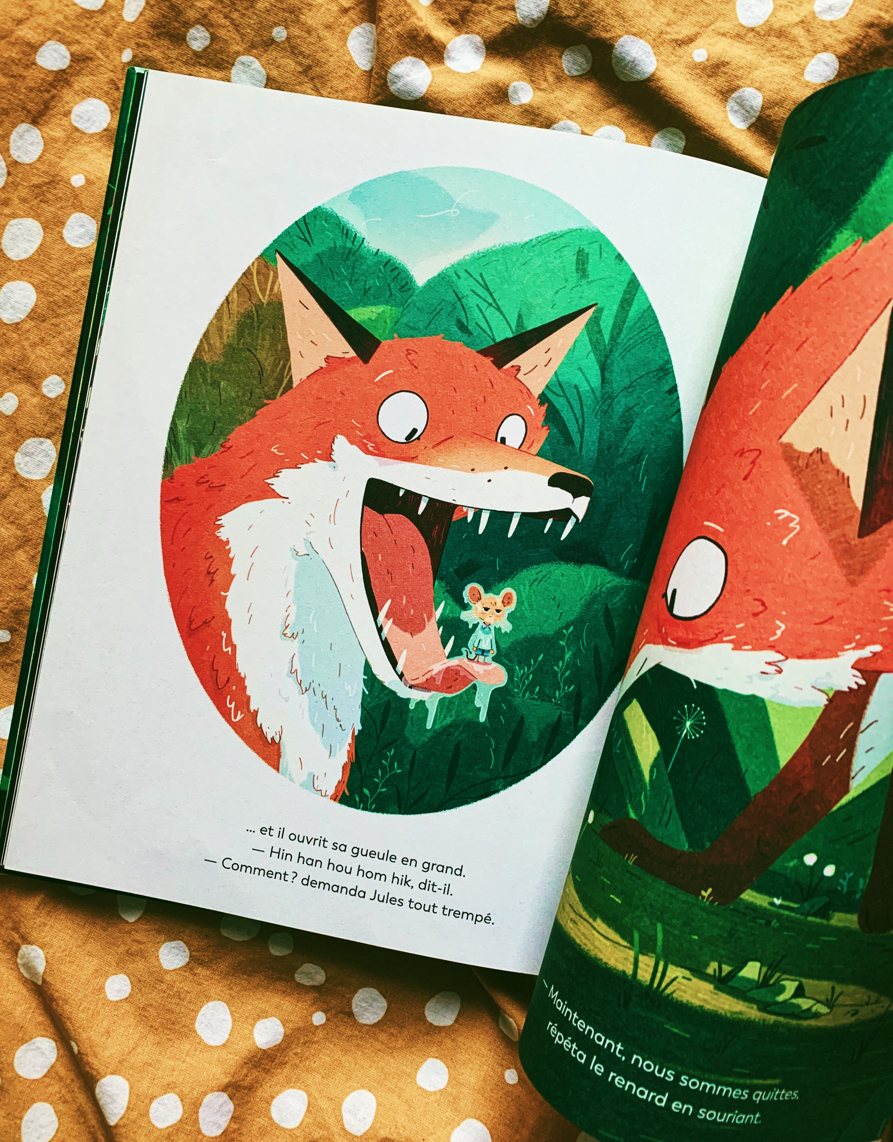 Pourtant je n’avais pas particulièrement remarqué cet album parmi les autres que mon Boukids avait empruntés à la bibliothèque. Mais bon. J’aimais bien les dessins et j’aime bien les renards. C’était pas trop mal parti.