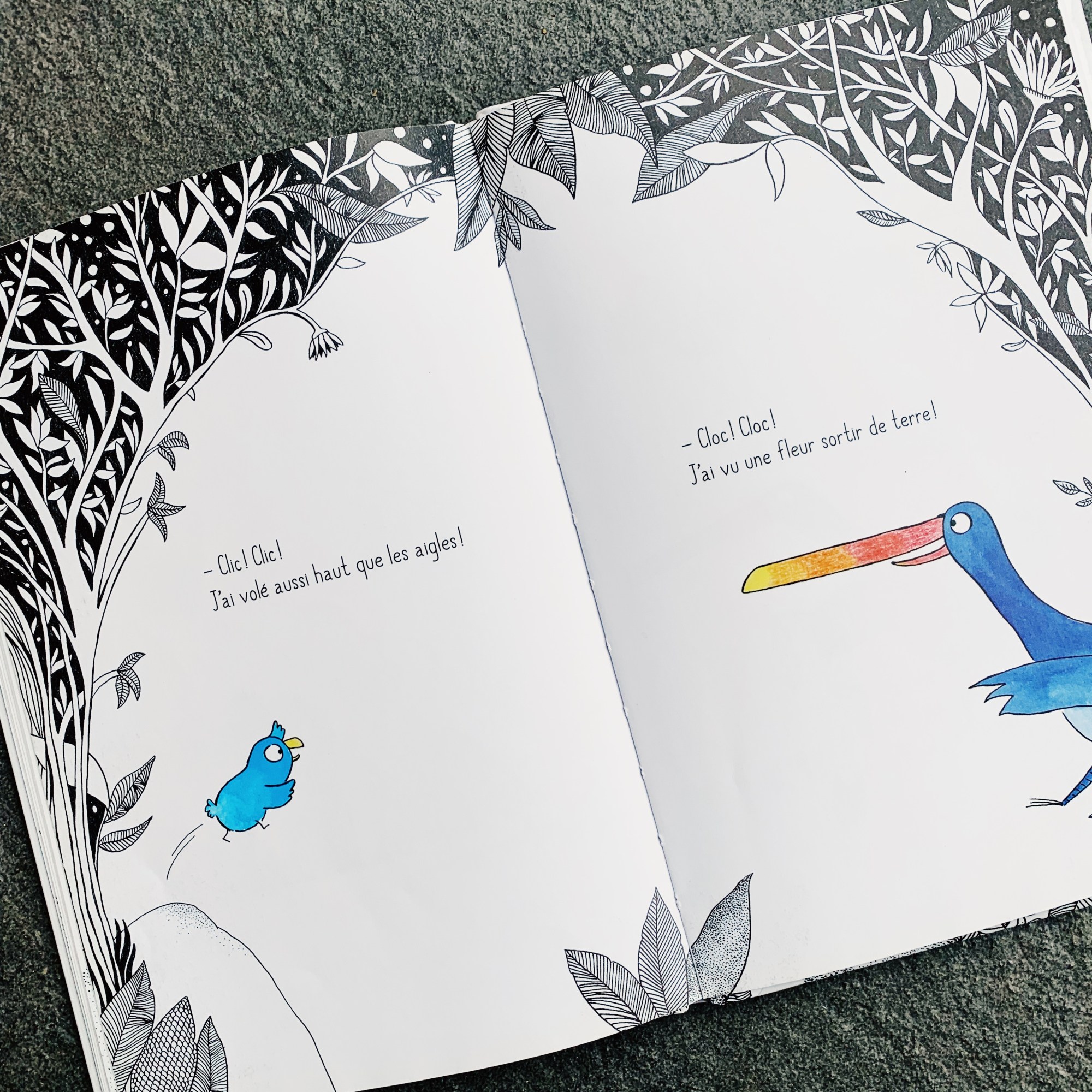 Une très jolie histoire sur l’amitié, l’exclusivité et la liberté indispensable à toute relation. Les illustrations en noir et blanc soulignées de touches de couleurs vives pour les oiseaux, apportent encore plus de poésie à l’album… une réussite !