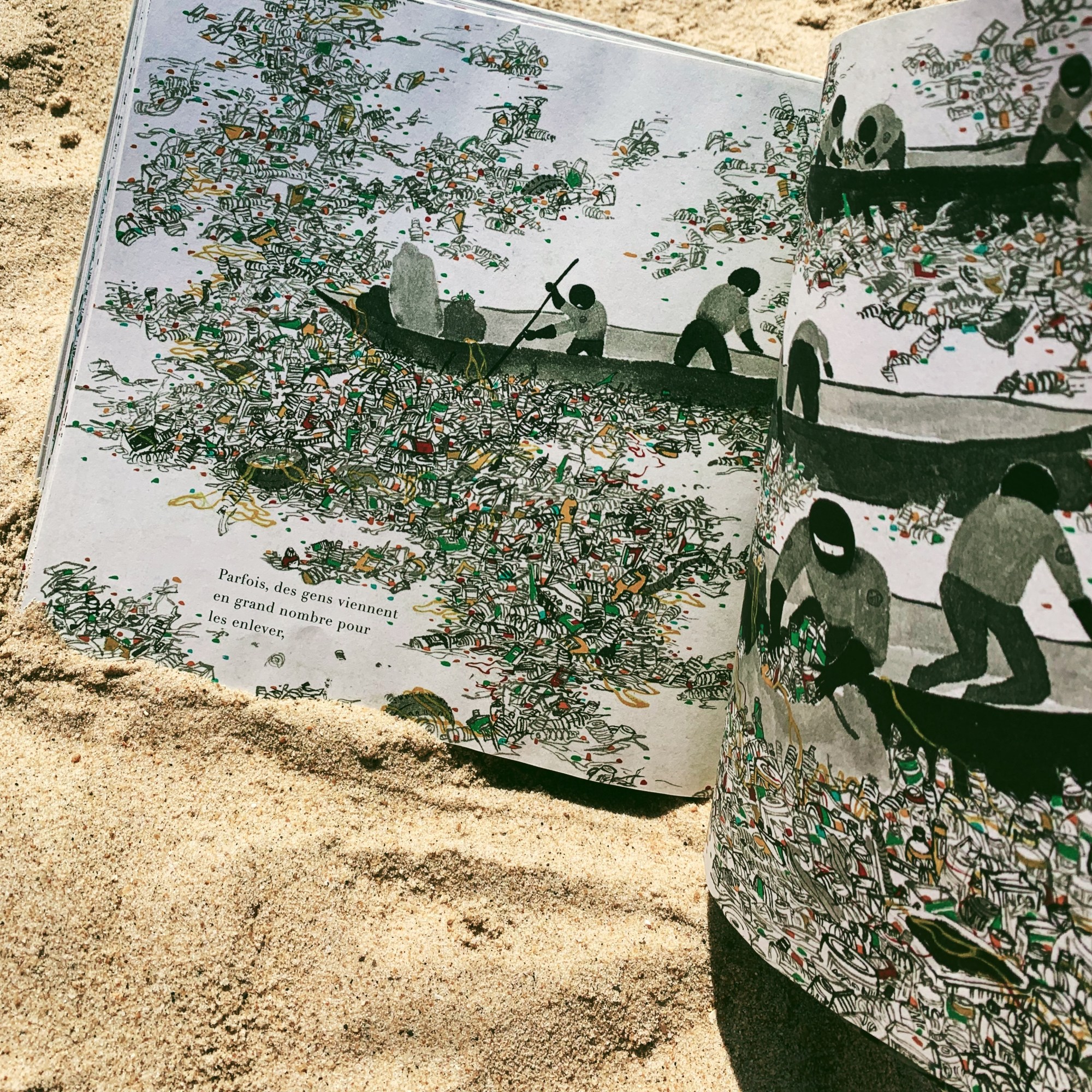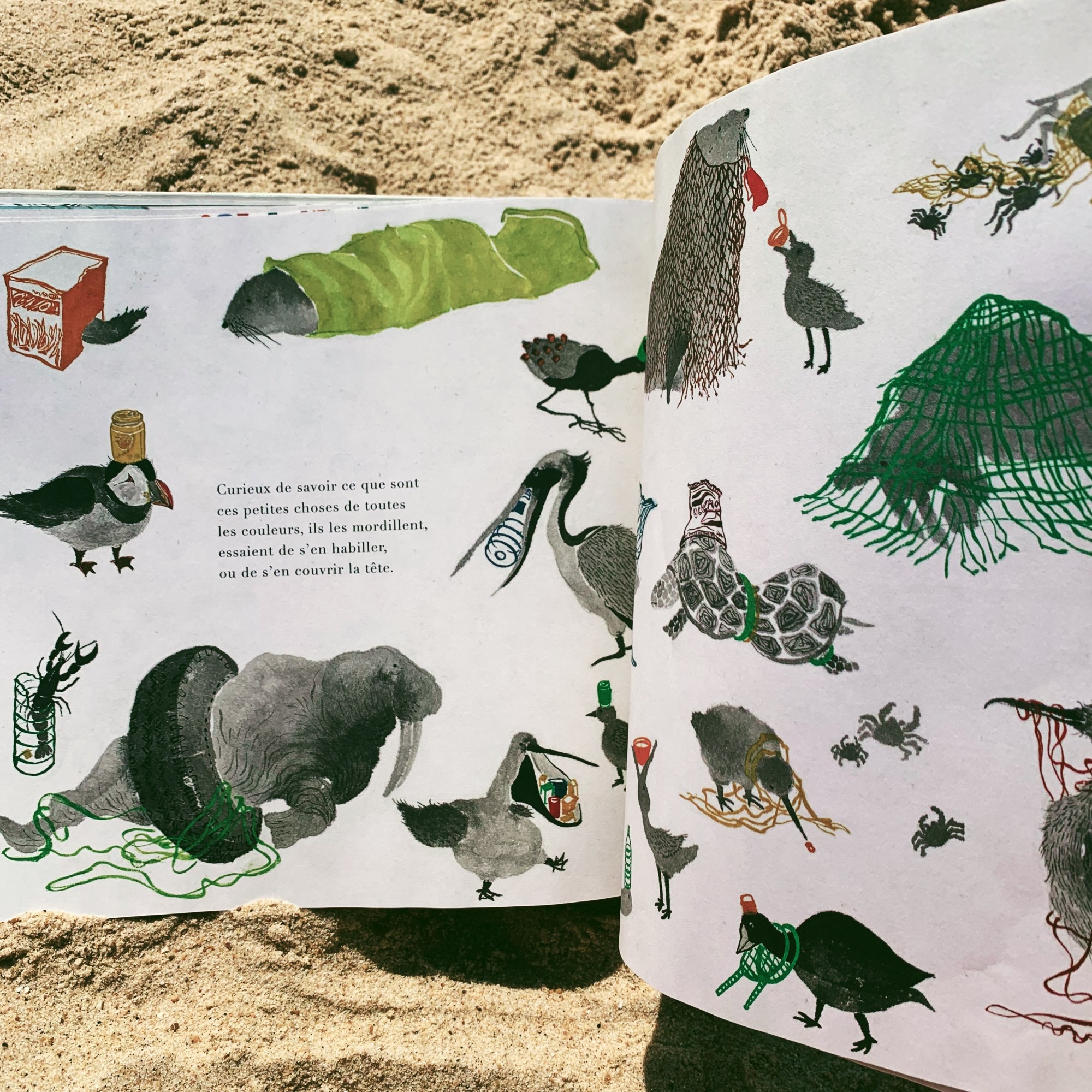 Mes Boukids ont été marqués par les images des animaux marins emprisonnés par des pneus ou des filets, intoxiqués par des bouteilles en plastique. Les images sont fortes et c’est tant mieux. Alors ni une ni deux en arrivant à notre journée à la plage, ils sont partis à la chasse au plastique. Parce que chaque petite main compte.