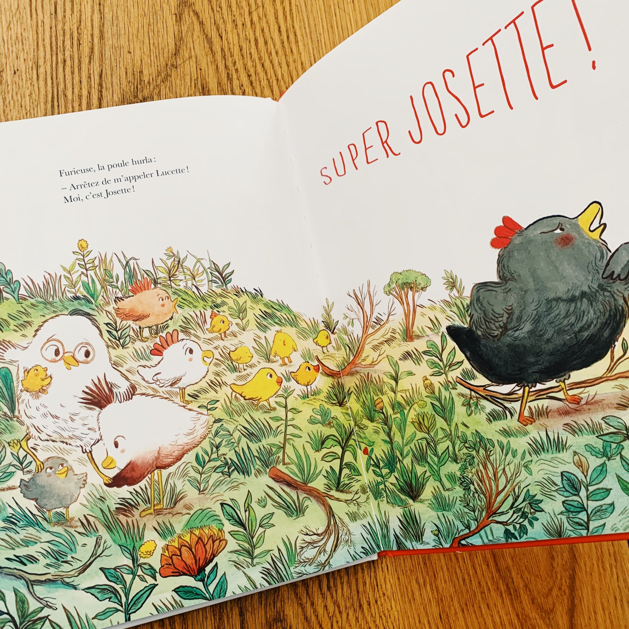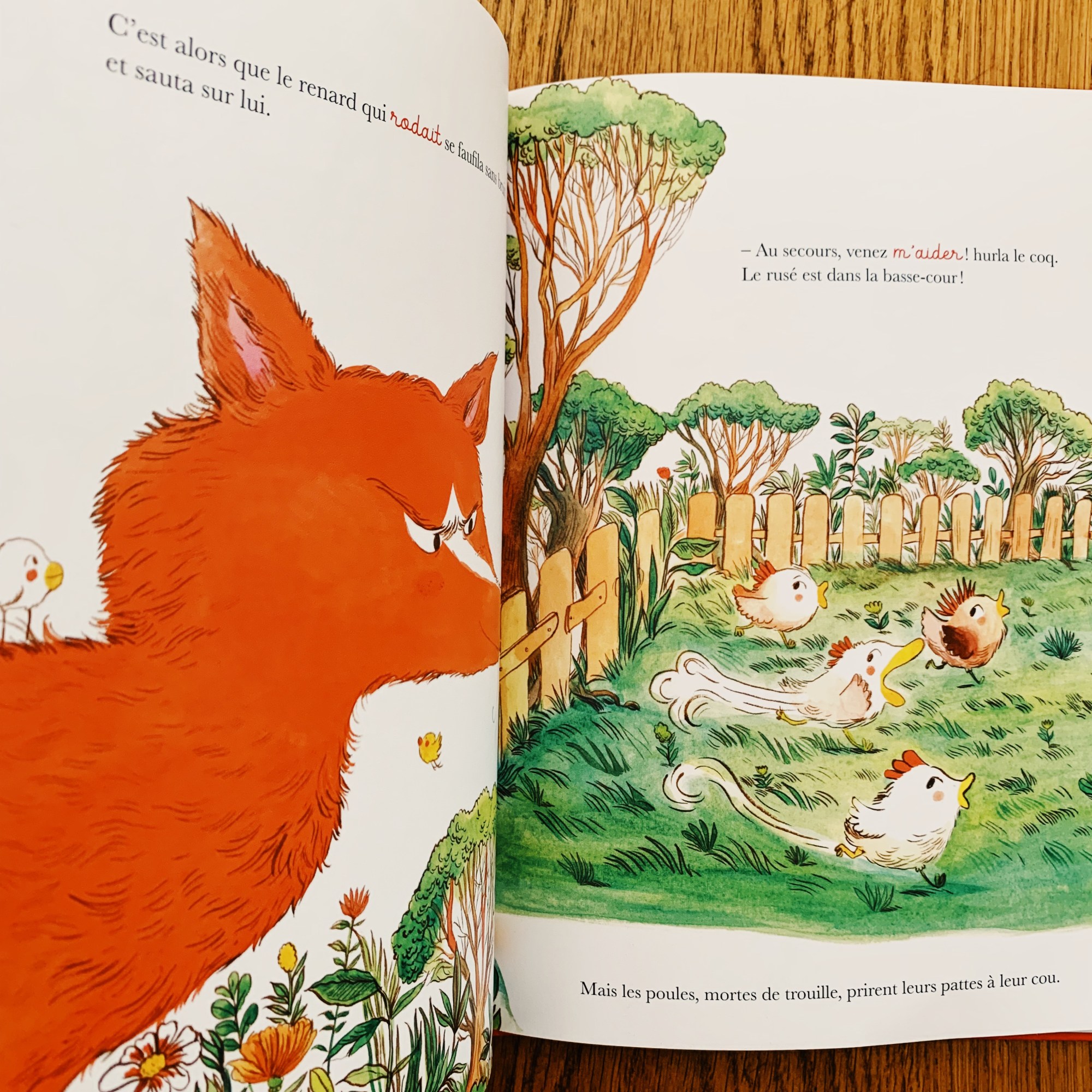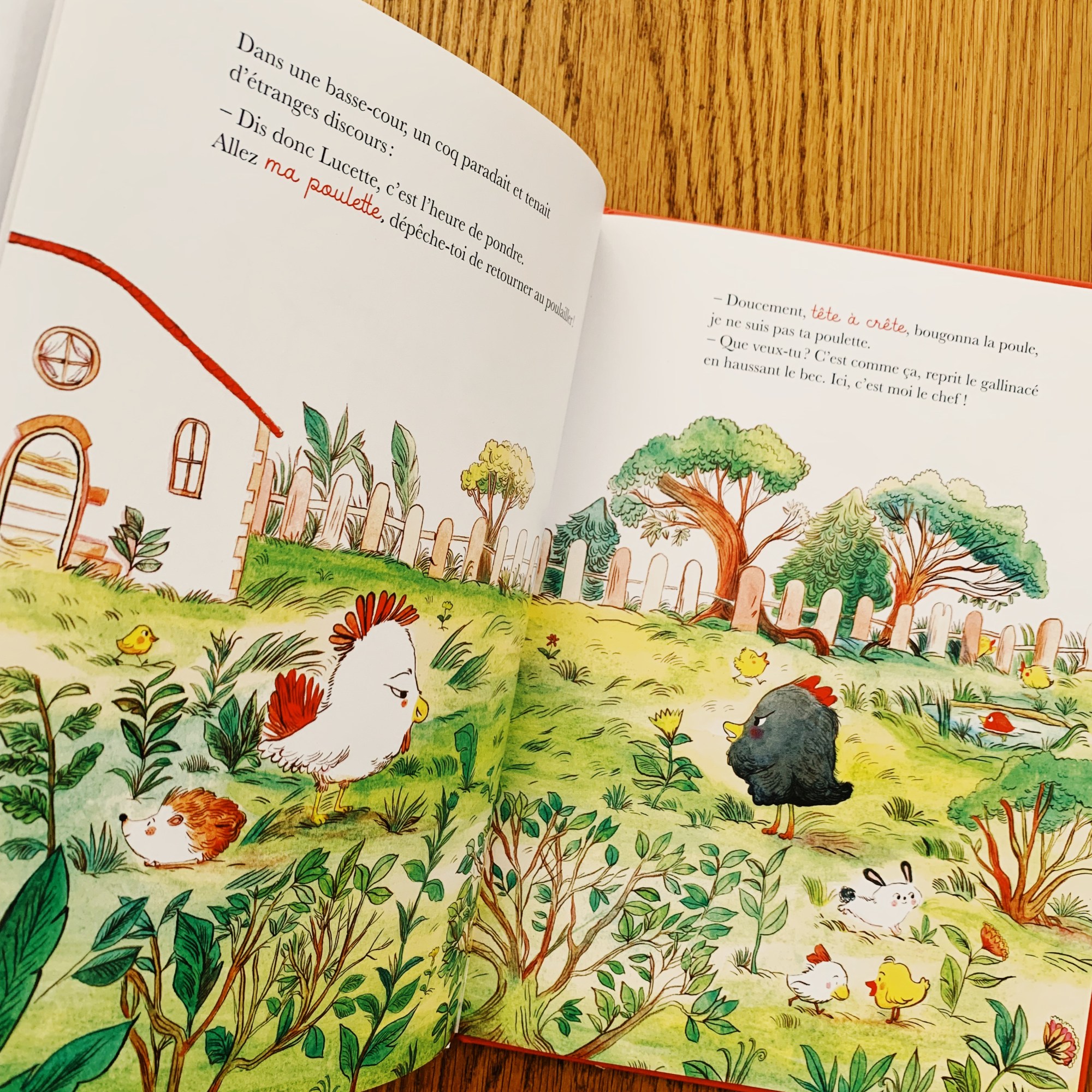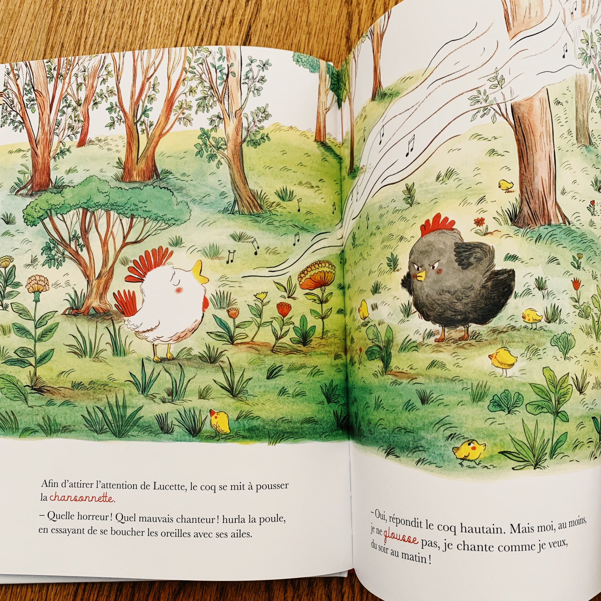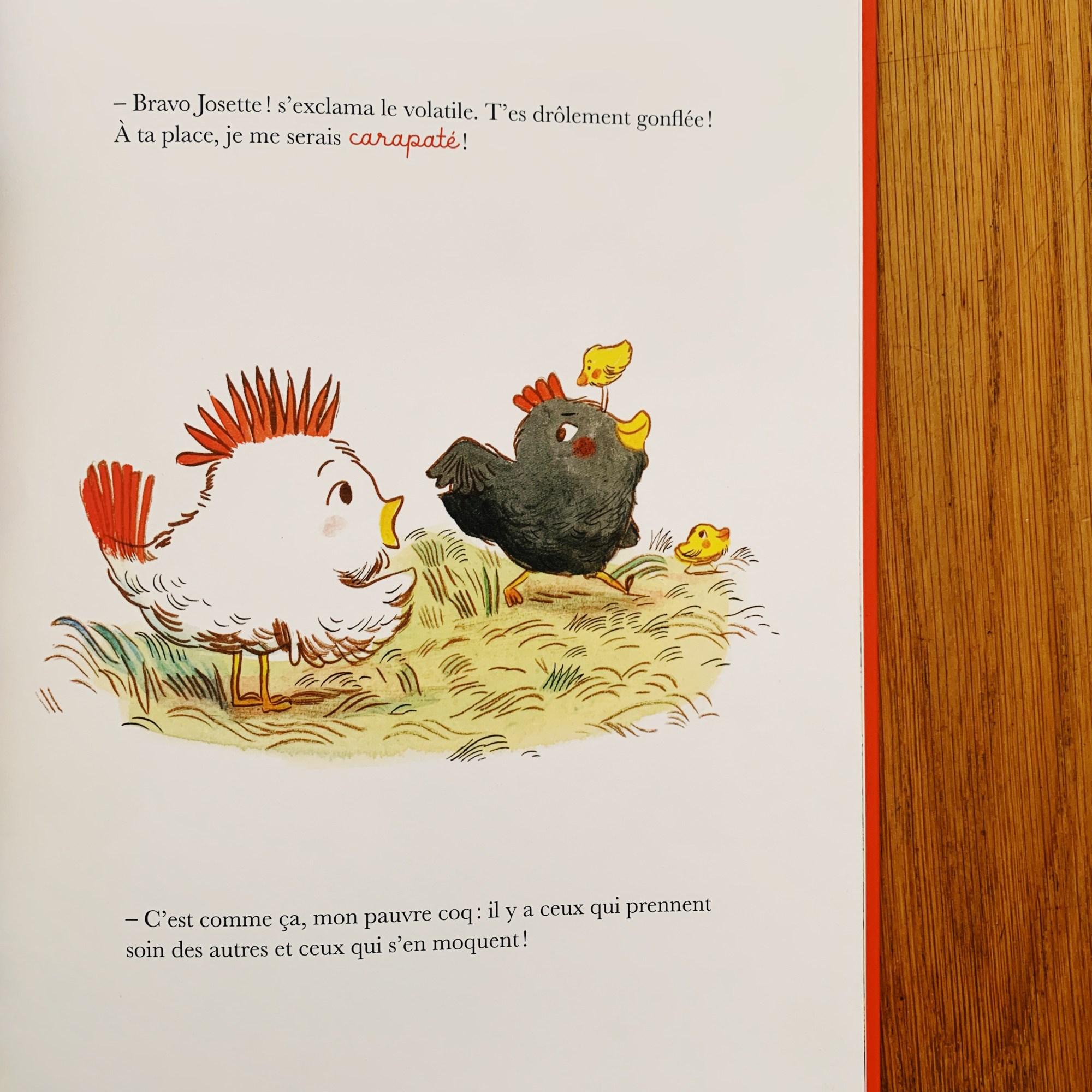 Autant vous dire que j’ai A-DO-RÉ cet album! La couverture est canon, le personnage de la poule est génial avec ses airs agacés, mais que dire de celui du coq qui cristallise toutes les caractéristiques du mâle supérieur mais si peu téméraire … bref : un petit bijou !