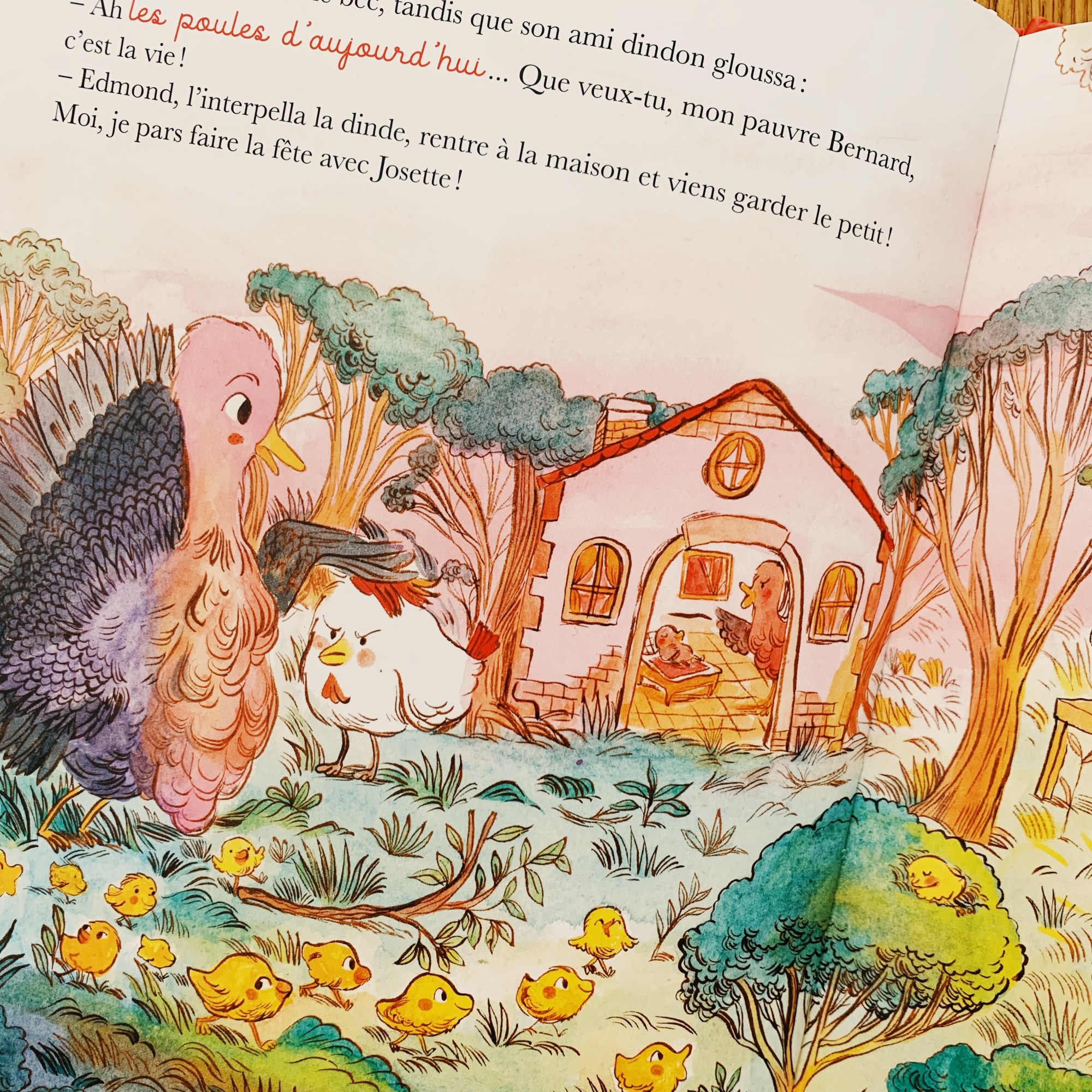 Les dessins sont plutôt classiques mais assez intéressants car le coq et les poules (du moins notre héroïne) ne sont pas très « genrés » pour appuyer légèrement le propos.