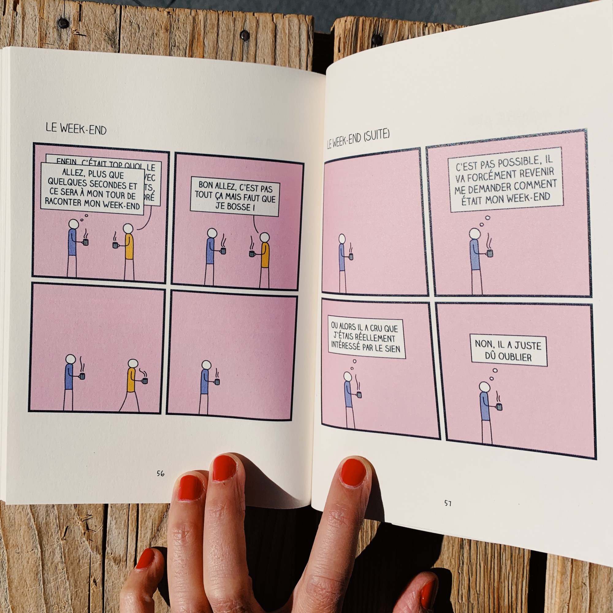 Titre ce sont des gags à la fois hilarants et désespérés en quatre cases sur le monde de l’entreprise par le très doué Ami Inintéressant. De nombreux stagiaires ont été sacrifiés pour que ce livre voit le jour alors achetez-le.