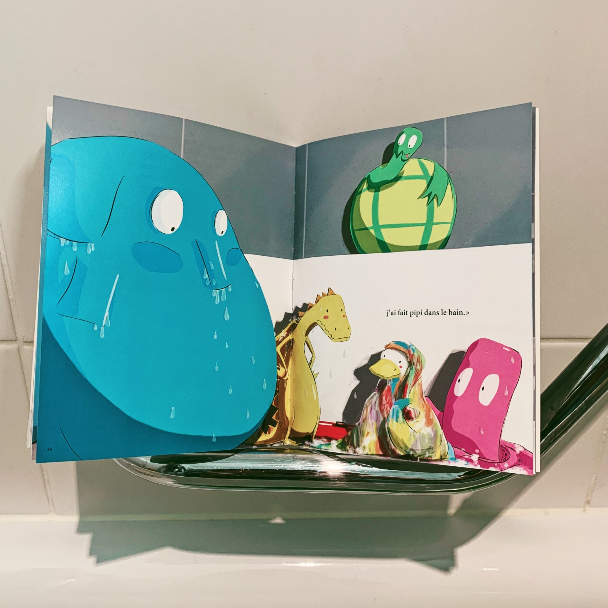 Il est arrivé une sacrée aventure à Berk… enfin c’est ce qu’il a raconté à son enfant. Un jour que le bain coulait, le doudou préféré a été posé sur le bord de la baignoire et ce qui devait arriver arriva… alors tous les jouets de bain se sont mobilisés pour le sauver! D’autant plus que Berk essayait désespérément de leur dire quelque chose, il avait l’air d’appeler à l’aide !
