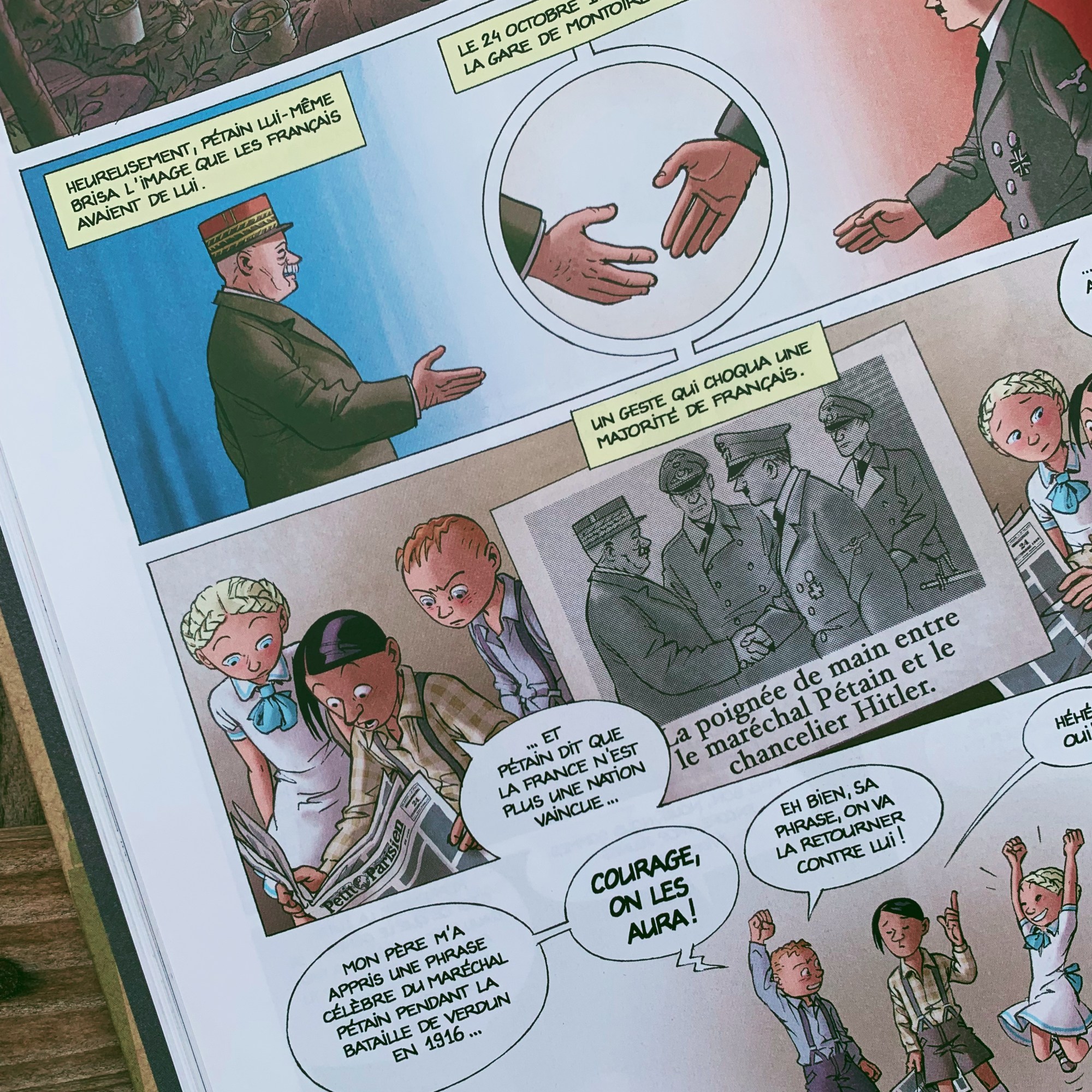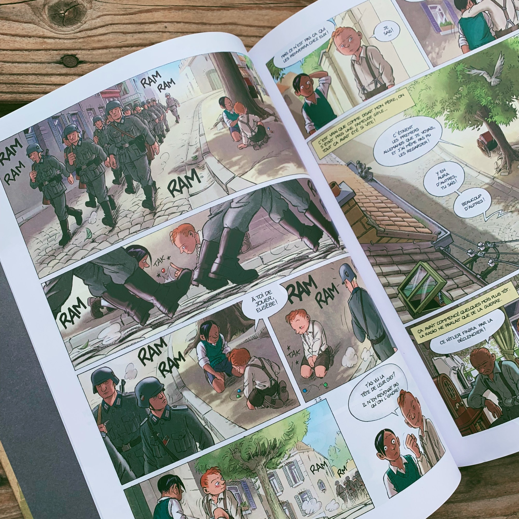 La deuxième guerre mondiale et l’occupation française font évidemment partie intégrante de notre histoire d’hier et en comprendre les enjeux permet de mieux envisager certains aspects actuels de notre monde. Et ce dès le plus jeune âge. C’est ce que propose cette série dans laquelle les principaux événements historiques sont explicités très clairement, tout en adaptant la fiction autour de personnages attachants pour qu’elle parle à tous par son aspect romanesque. En plus de nous offrir une vraie histoire d’amitié et d’aventures, le parti pris qui évite tout manichéisme montre une grande intelligence et permet aux jeunes lecteurs qui découvrent parfois ce pan de l’histoire de se forger une opinion sur ces années si cruciales pour notre époque.