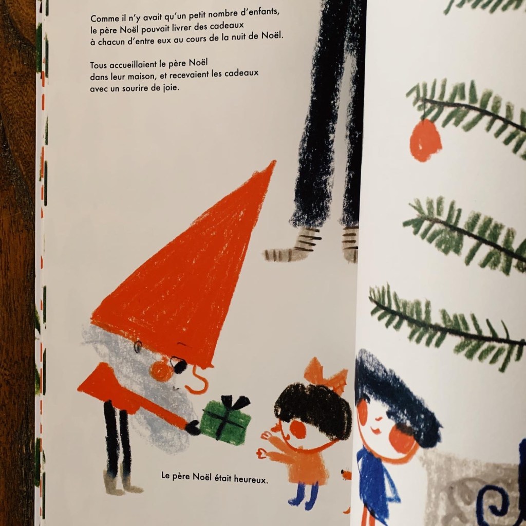Une histoire trop chouette pour rassurer un peu les petits enfants qui commencent à se poser des questions sur l’un des plus grands mystères du monde qui les entoure (et je ne vous parle des illustrations crayonnées absolument magnifiques). Cette vision de la fête de Noël apporte un point de vue solidaire et généreux qui manque parfois dans certaines histoires autour de cette fête.