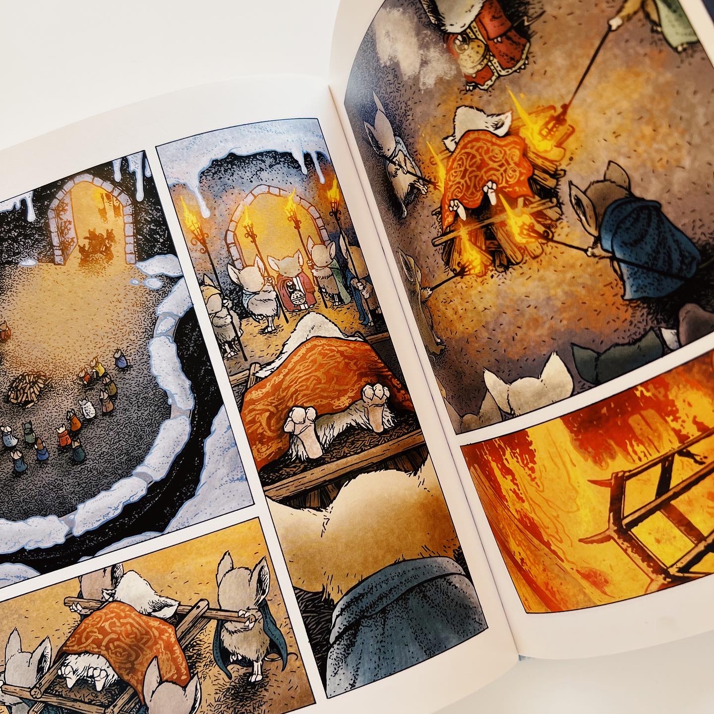 C’est une super découverte dont je veux vous parler ce dimanche. Des recueils graphiques regroupant des comics américains publiés à rythme épisodiques par son auteur depuis 2006 sous le titre original Mouse Guard. Mettant en scène un univers médiéval recherché et profond, traduites chez Gallimard depuis 2008, les Légendes de la Garde sont parues en quatre tomes (le quatrième, 𝘉𝘢𝘭𝘥𝘸𝘪𝘯 𝘭𝘦 𝘉𝘳𝘢𝘷𝘦 𝘦𝘵 𝘢𝘶𝘵𝘳𝘦𝘴 𝘤𝘰𝘯𝘵𝘦𝘴, moins long, est un peu à part).