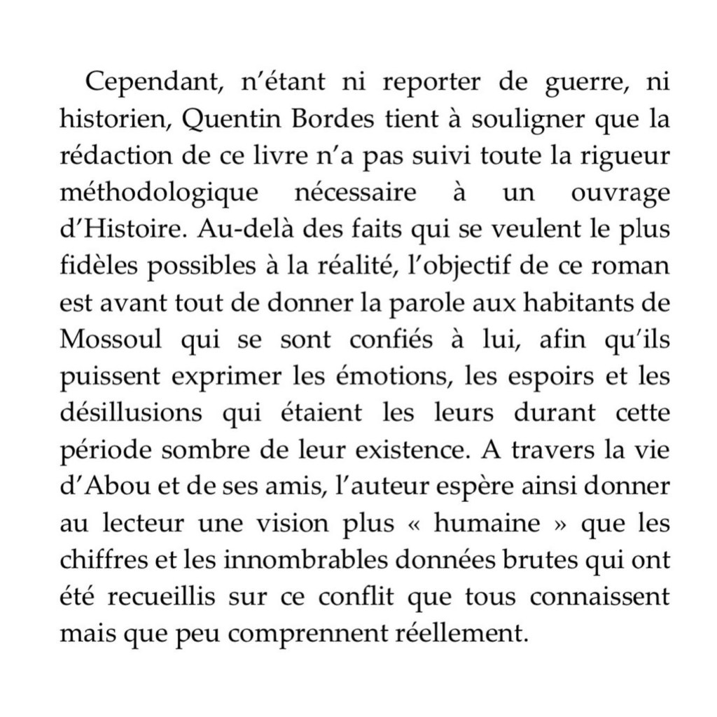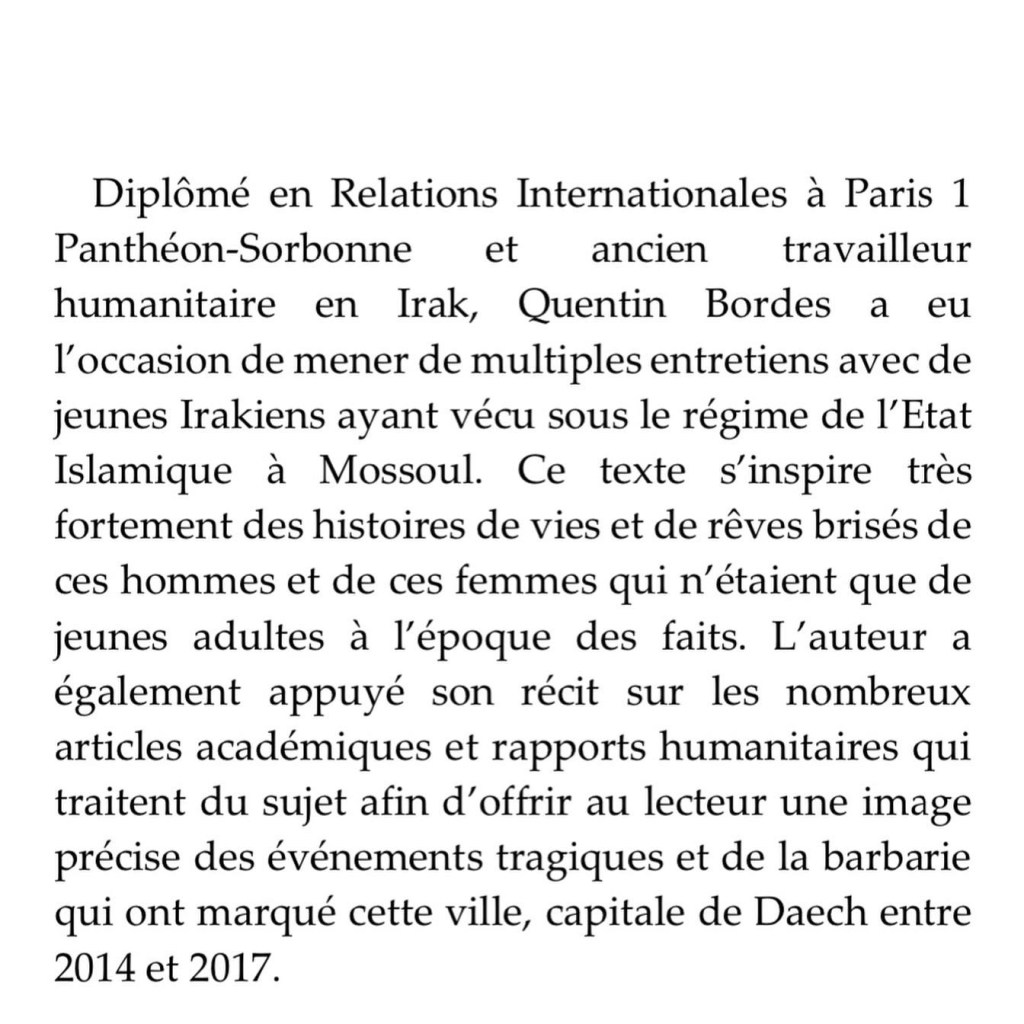 Apprenons de ces histoires. Parce quโil en existe tant dโautres. Anne Poiret conclut d’ailleurs sa prรฉface avec cette alerte : « Qu’on le veuille ou non, Mossoul est un peu notre histoire ».