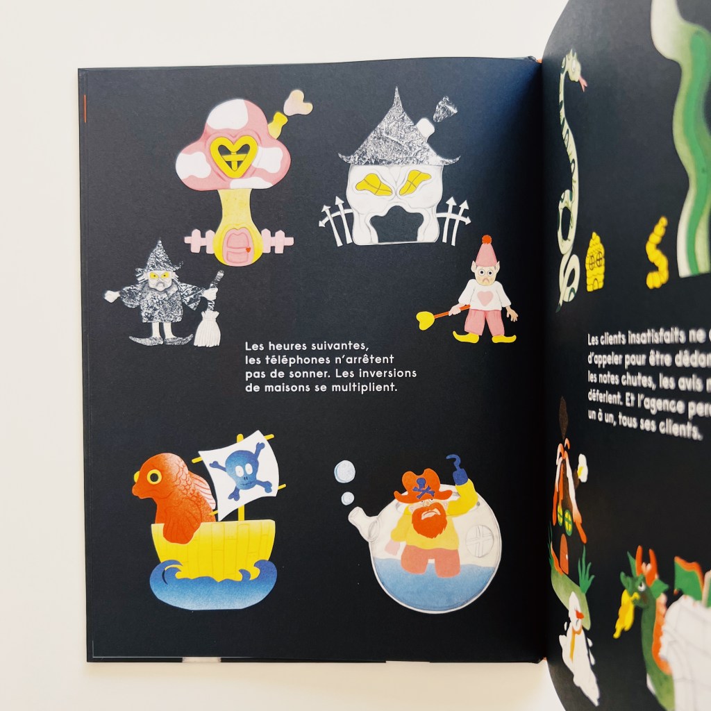 Cet album est absolument magnifique ! Nous qui adorons les illustrations colorées et peps nous voilà servis. Les dessins ressortent magnifiquement sur le fond noir des pages et proposent un univers loufoque et très drôle.