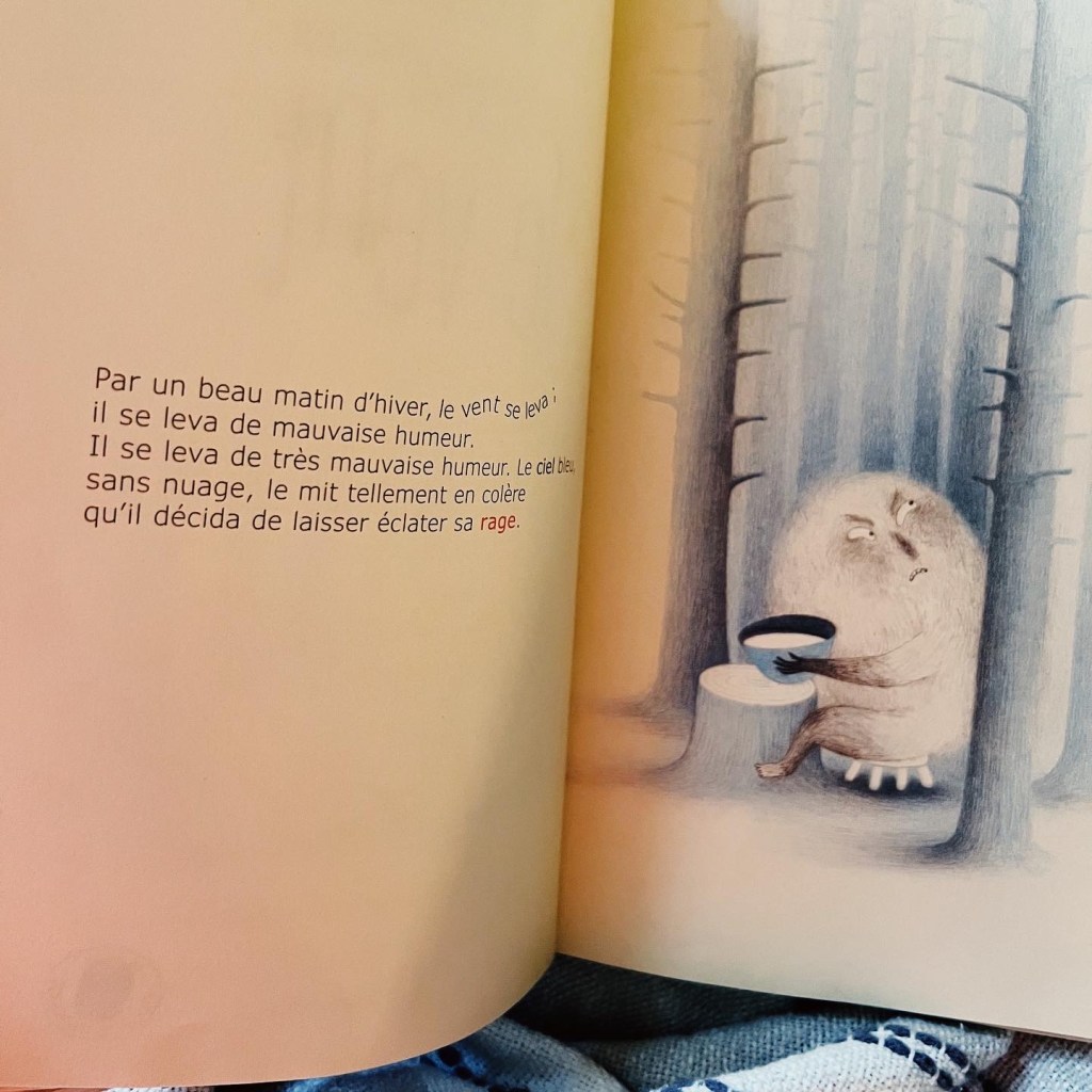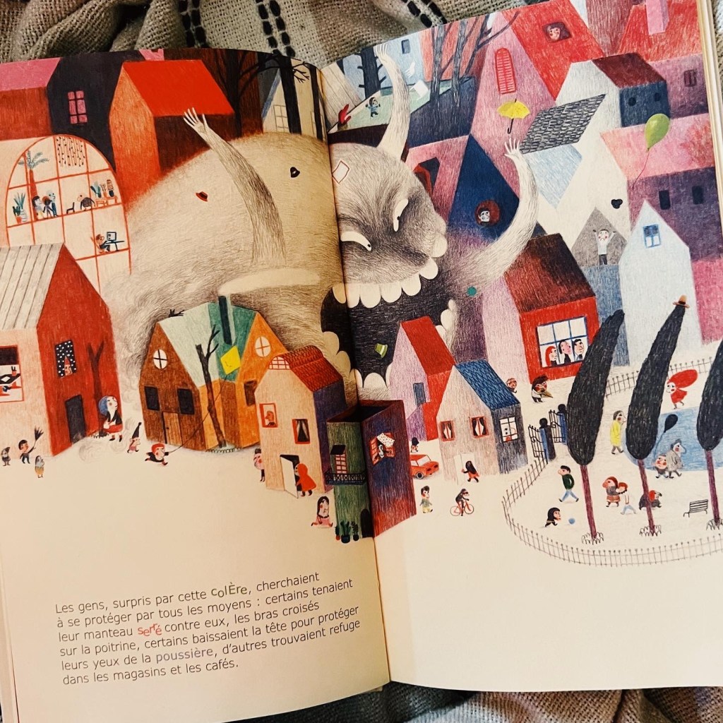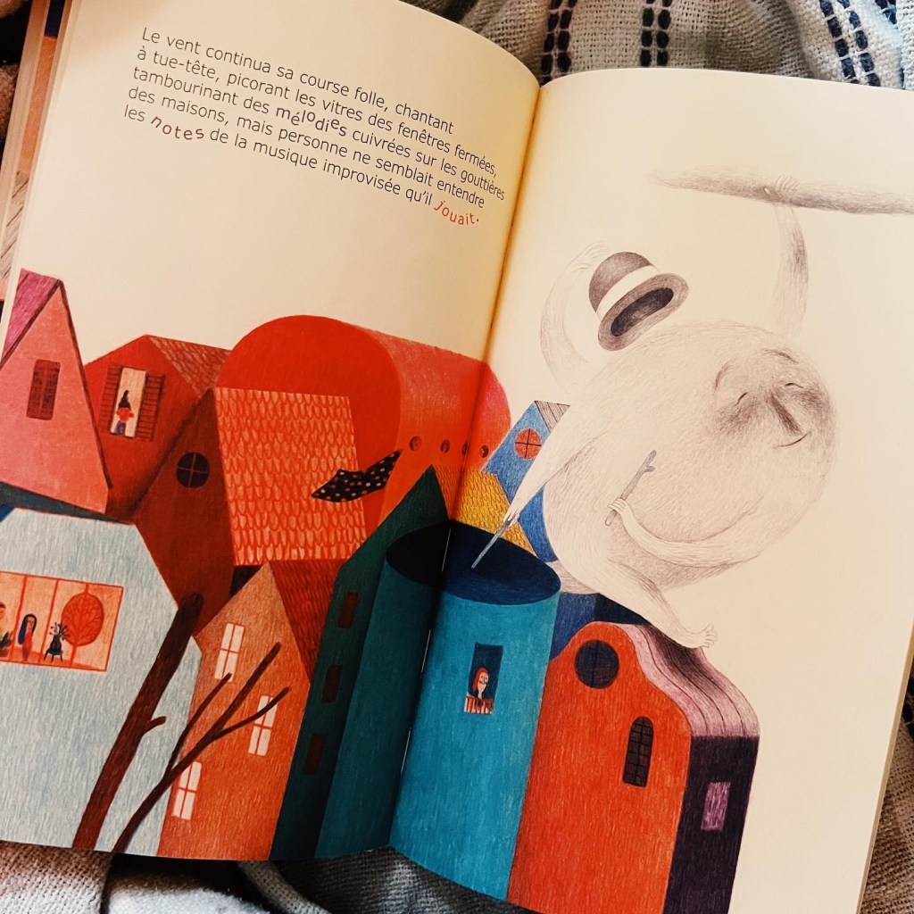 Le vent, notre protagoniste principal, se modifie au gré de ses envies, de ses émotions et, de petit comme un ours, devient géant pour avaler des maisons… quelle magie !