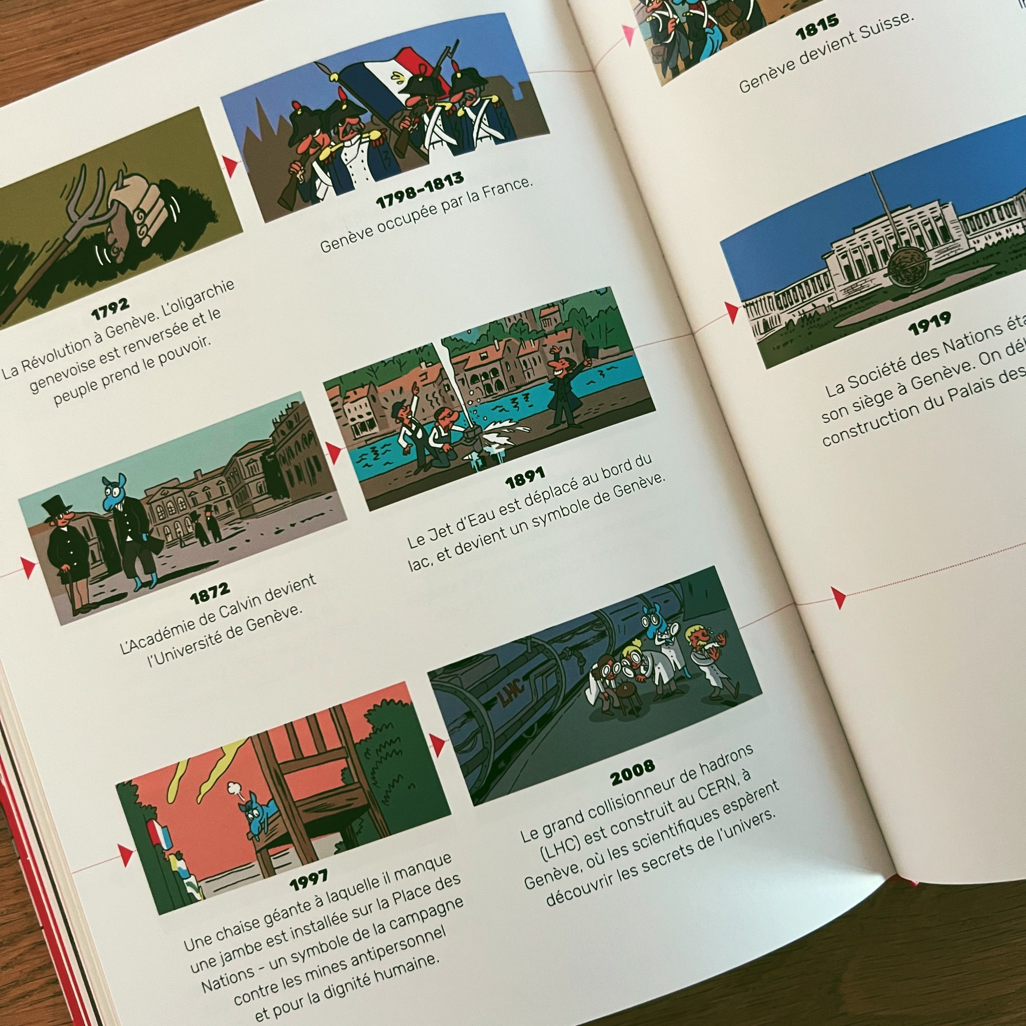 Revivez l’histoire de Genève, racontée sous la forme de 17 histoires divertissantes et illustrées.
