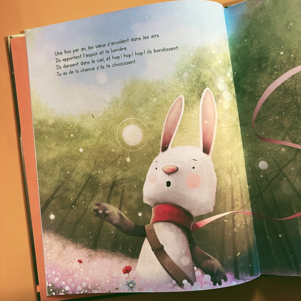 Cette fois c’est Lapin qui est chanceux… pas une, deux, mais trois fois! Trois petits vœux qui s’accrochent à lui. Mais Lapin n’a pas trop d’idée, que pourrait-il souhaiter?