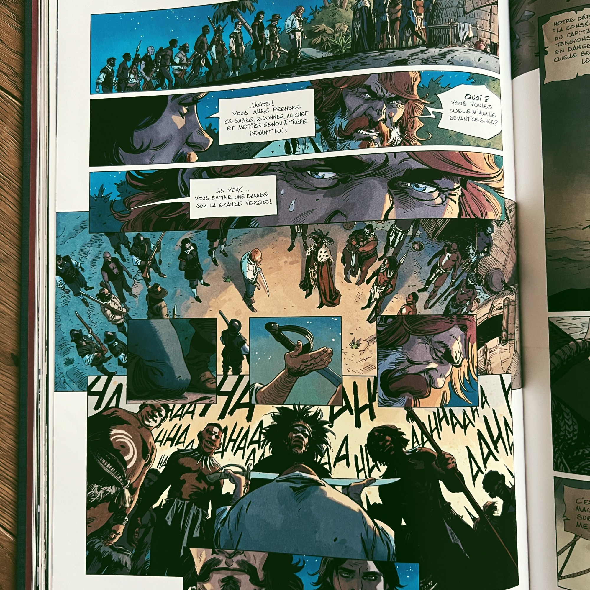 En ce qui me concerne je veux juste ajouter que j’ai été totalement prise par l’histoire, un récit d’aventure épique à une époque fascinante mais aussi des portraits de personnages qui dépeignent parfaitement la noirceur de l’âme, autant que par les illustrations dinguissimes de Thimothée Montaigne, qu’il s’agit de la première partie d’une histoire en deux tomes, et que… c’est quand la suite ??