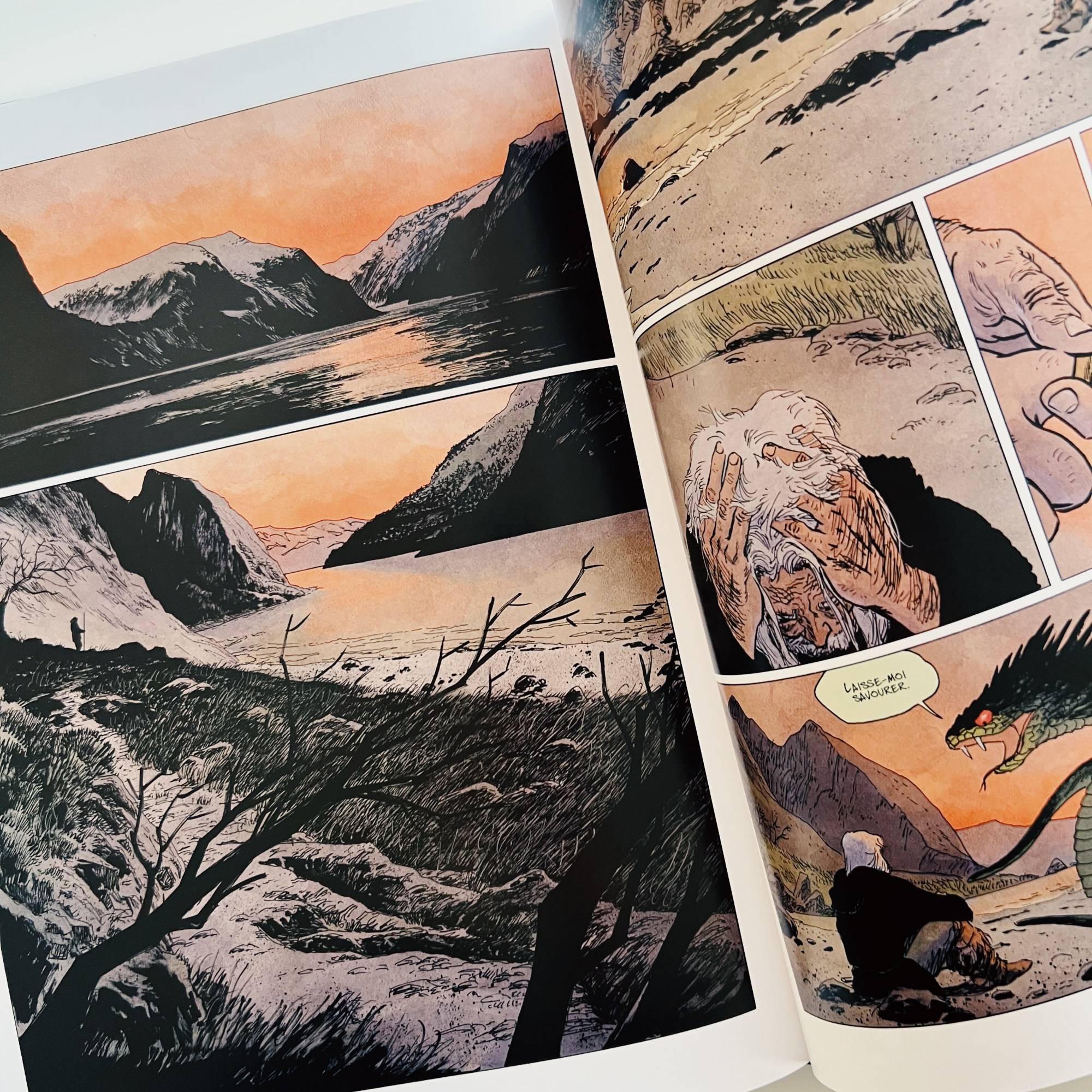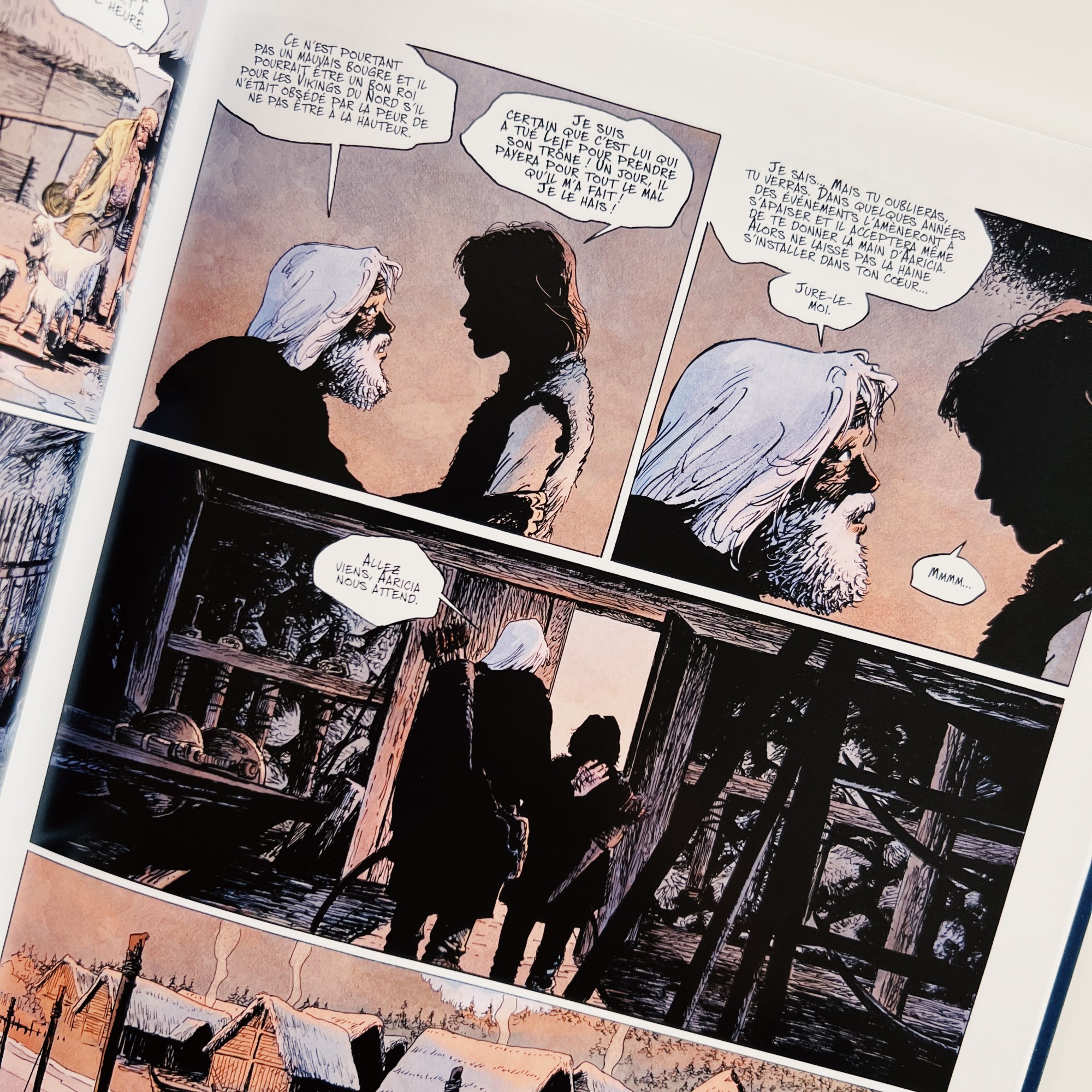 Robin Recht ouvre la voie avec une histoire particulièrement émouvante, puisqu’on retrouve un homme au crépuscule de sa vie, devant dire adieu à celle avec qui son cœur battait à l’unisson depuis que les dieux les avaient destinés. Quelle énorme prise de risque ! Si les dessins sont bien évidemment plus personnels, et qu’on cherche les traits si connus dans les visages, c’est un bien bel hommage à deux artistes talentueux et à un héros si présent dans notre imaginaire collectif, et Robin Recht remporte ce challenge haut la main et cet album au format très agréable amène une vraie plus-value au monde de Thorgal.