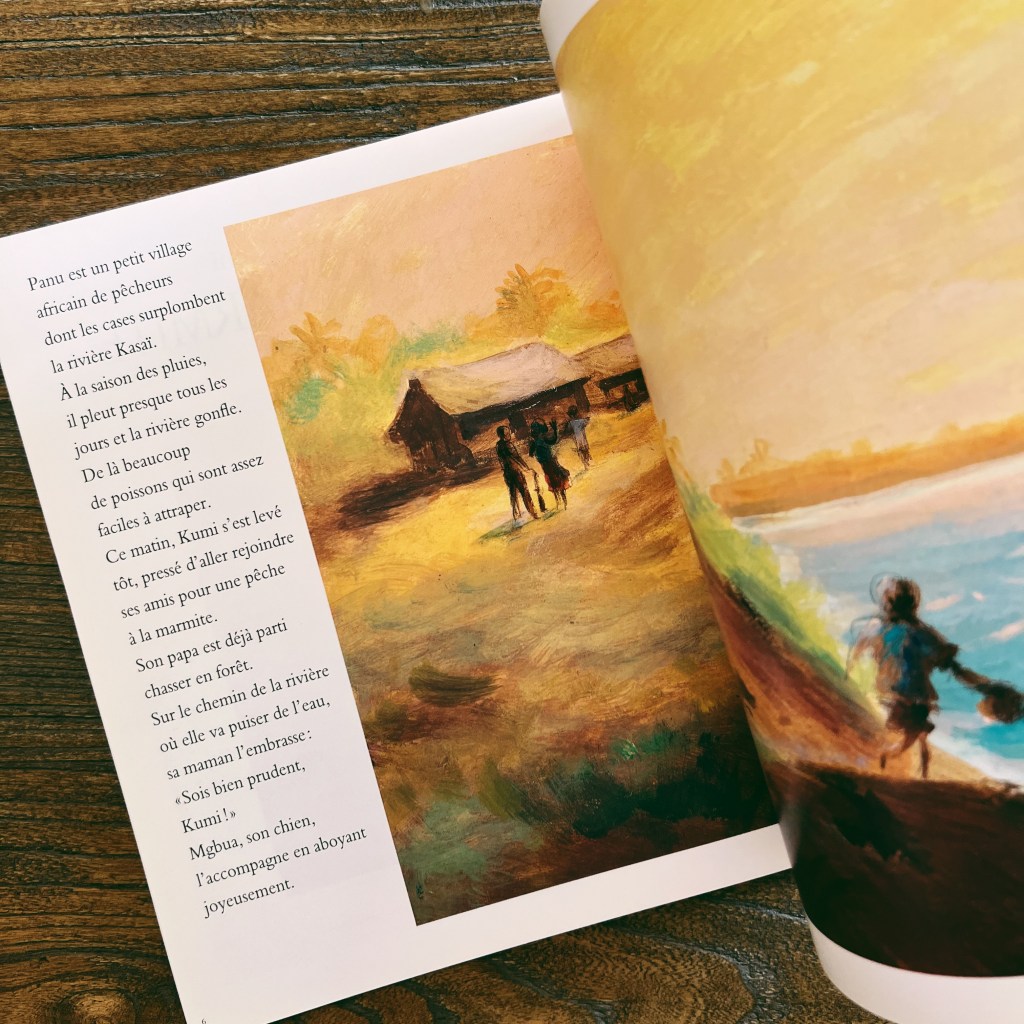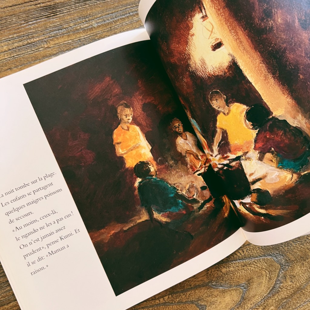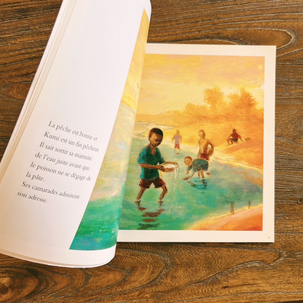 Les illustrations à la peinture sont autant de tableaux remplis de lumière et de la chaleur d’Afrique qui nous enrobe tout entiers. J’aime tellement ces histoires qui nous font voyager si loin, qui montrent à nos enfants comme d’autres vivent si différemment d’eux, qui les ouvrent au monde.