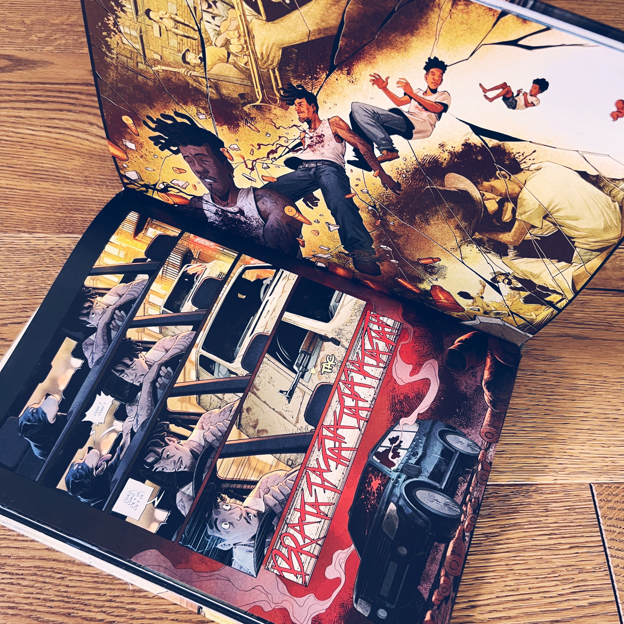 Violence, hémoglobine et entrailles à gogo, cet album est évidemment destiné à un public adulte et averti, adepte du genre. Moi je me suis régalée ! J’ai été bluffée par les illustrations de Gorgié desquelles transpercent un dynamisme très rythmé et en même temps un lien avec les personnages dont on ressent volontiers toutes les émotions…