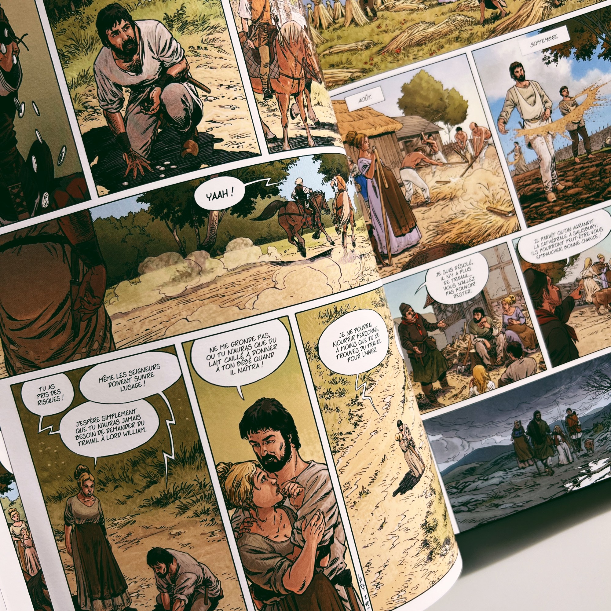 Prévue en six tomes, on assiste ici évidemment à la découverte des protagonistes et aux sources de l’histoire avec Tom le bâtisseur et sa famille, le prieur Philip, la jeune et belle Aliena ou l’infâme William… tout pour nous faire trépigner d’impatience en attendant la sortie du second opus.