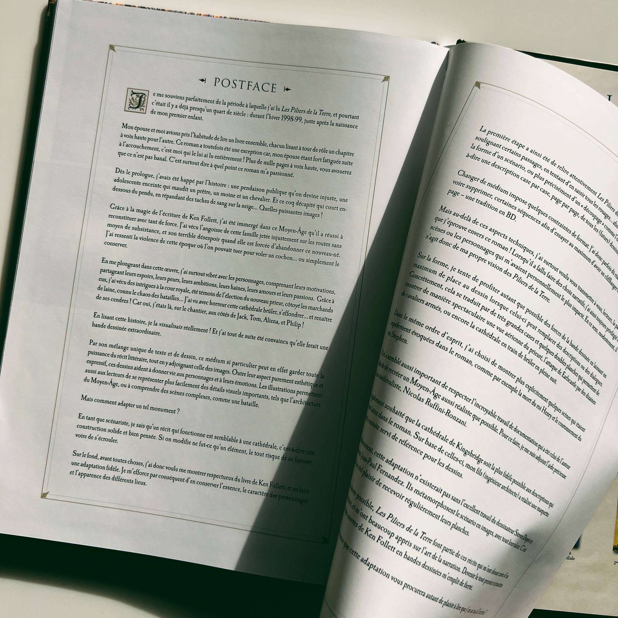 Si l’histoire est établie, on assiste ici à une version riche et étoffée par les illustrations précises et réalistes de Steven Dupré. L’adaptation par Didier Alcante de cette gigantesque épopée médiévale est des plus fidèles et a en outre été supervisée et documentée par un docteur en histoire pour rester au plus proche des sources. Et ce travail titanesque se ressent, validé par le Maître en personne qui offre une préface inédite.