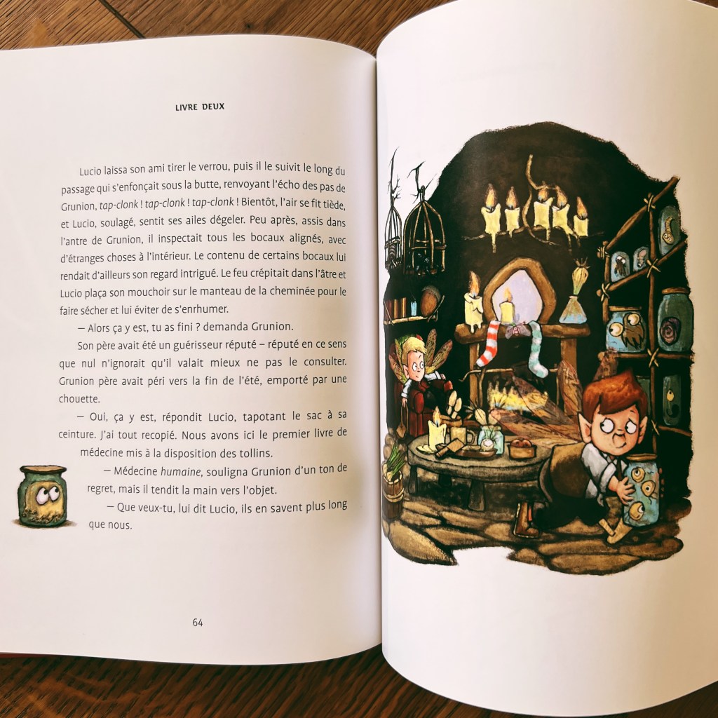 C’est donc des histoires de Tollins qui sont contées dans ce recueil. Trois. Avec une galerie de personnages plus attachants les uns que les autres, dont Lucio notre petit héros, le mini tollin (on dit un tillet) Romain, le sombre Nartraq ou encore le Haut Tollin qui vit dans les profondeurs de la terre, sous la gare de Chorleywood (le village d’humains barbus où résident les Tollins), le chef du clan qui règne d’une main de fer (gare à qui enfreindra les règles!). La première d’entre elles, la règle absolue : « Aucun contact avec les humains. Jamais. »
