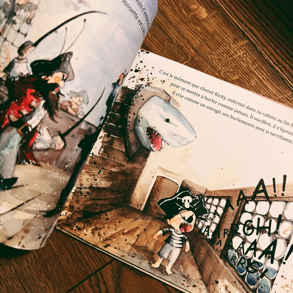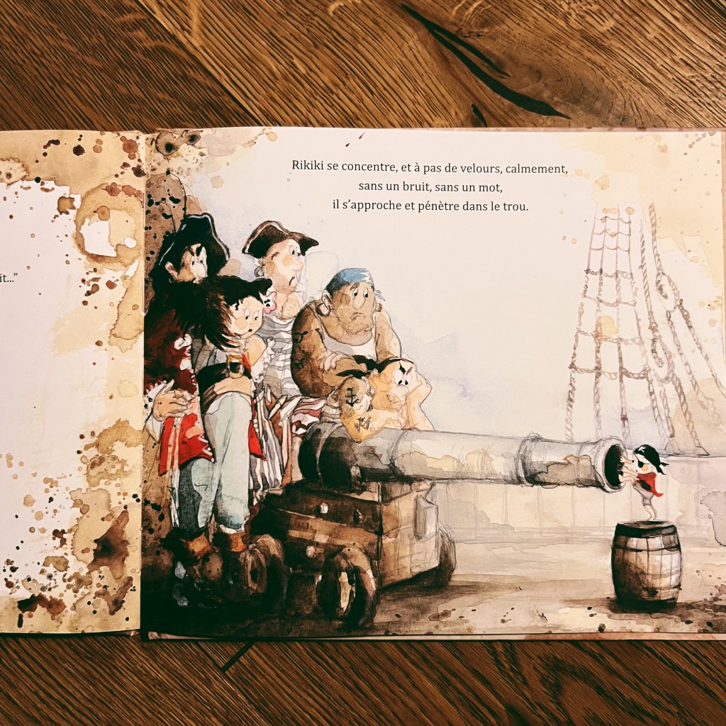 Nous Rikiki, on l’adore ! (mais pas trop fort) grâce entre autre aux illustrations parfaites et si particulières avec une mise en couleur qui donne envie de s’attarder longtemps sur chaque page. Un album au top pour les petits mousses!