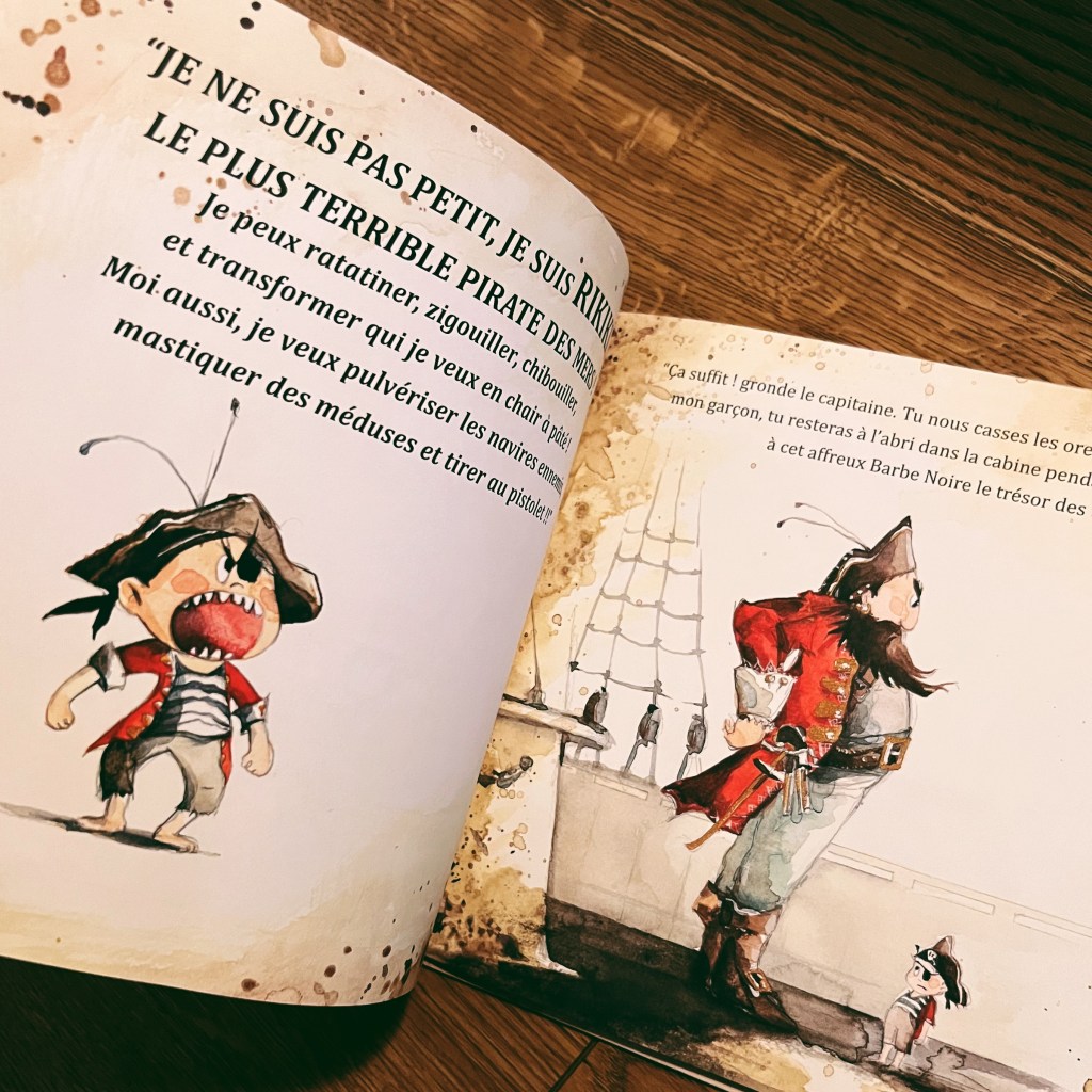 Mais il n’a de petit que la taille notre mini pirate. Quand il décide de se faire entendre, ses cris traversent toutes les Mers du Sud! Et sa détermination pour rejoindre ses parents sur leur bateau pour sillonner le large n’a rien à envier à sa voix, et pas question d’attendre d’être plus grand !