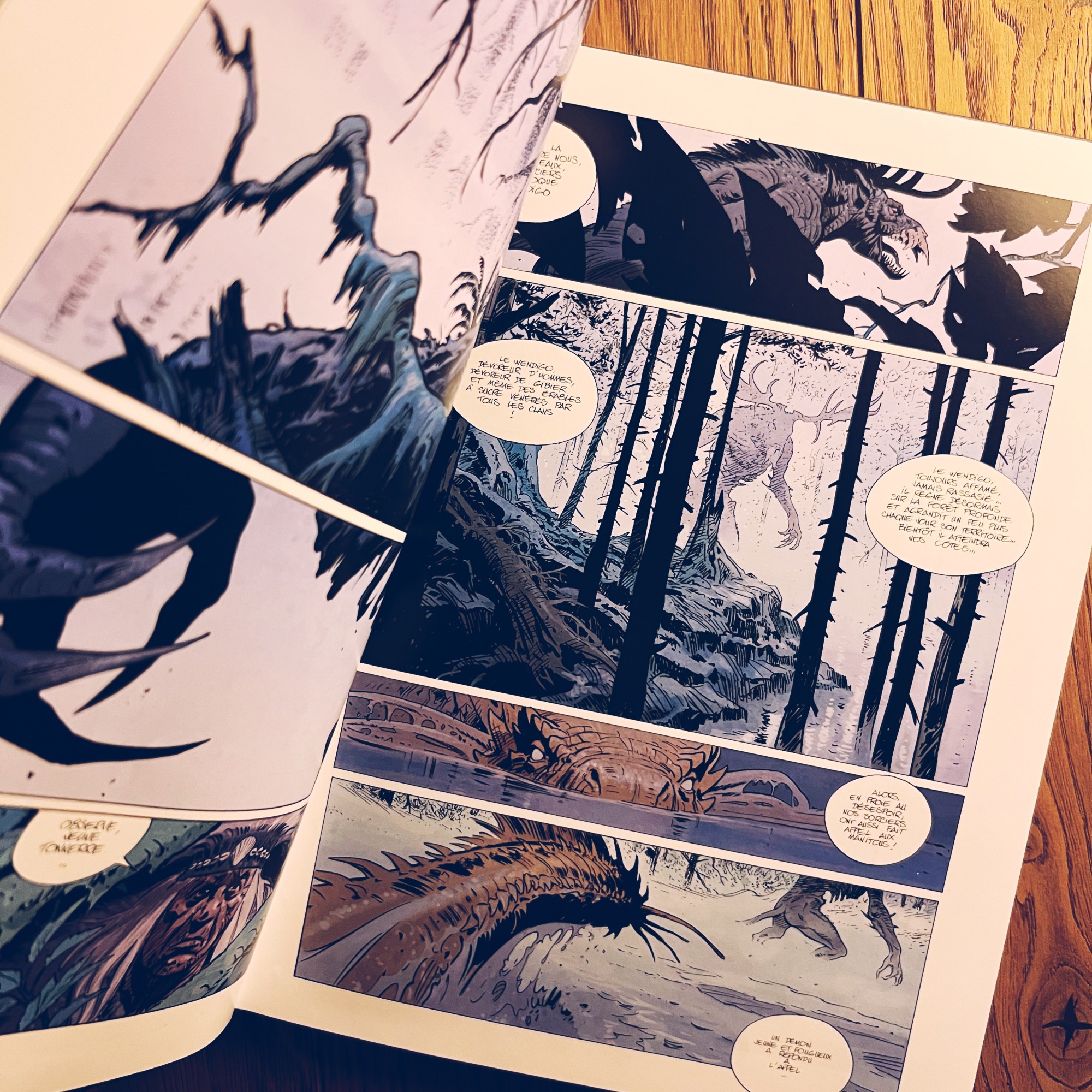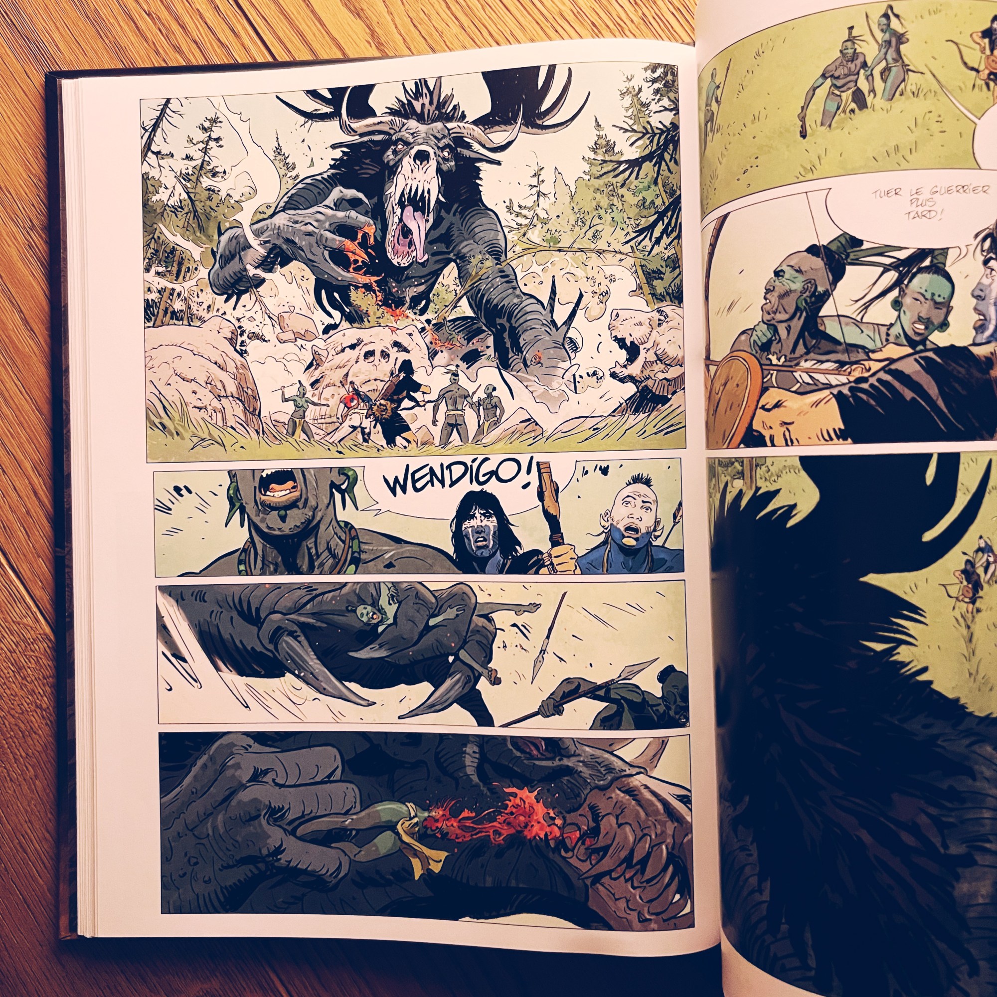 Wendigo se situe après les aventures de Thorgal, Aaricia et Jolan au pays Qà, lors de leur voyage de retour dans les terres du Nord. A la merci d’une tempête, ils sont pris malgré eux dans le conflit qui oppose deux peuples, ceux de l’Eau et ceux de la Forêt. Selon la légende, le Wendigo, démon qui sème la terreur sur ces terres, ne pourra être vaincu que par la flèche taillée dans la branche la plus haute de l’arbre de vie et tirée par un guerrier à la peau claire venue des terres froides au-delà de l’océan…
